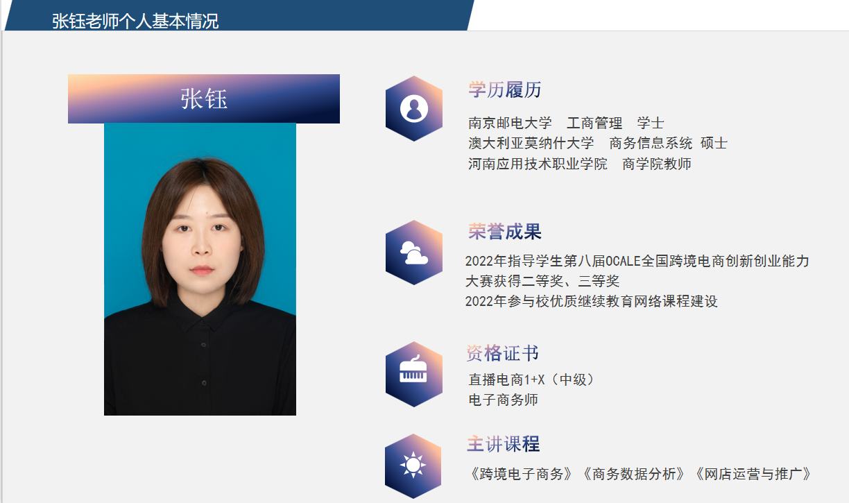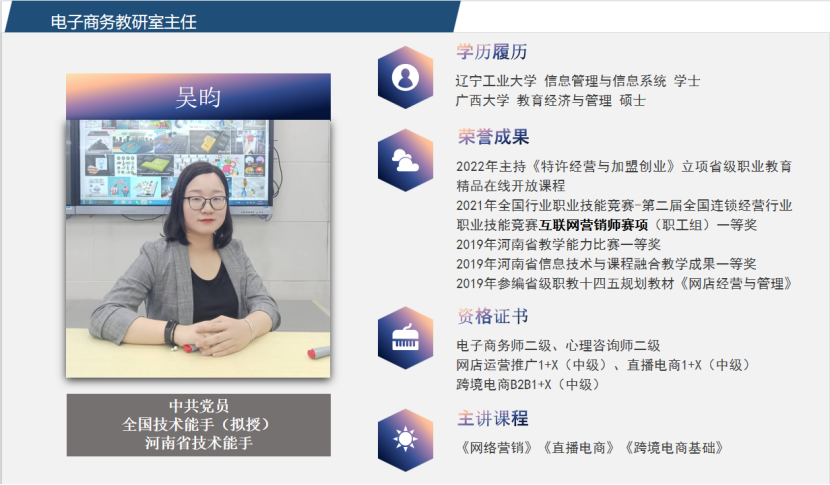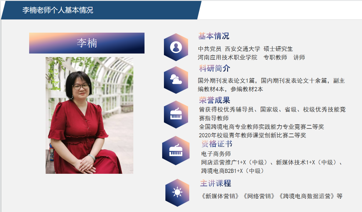 目前跨境电商专业教师是一支充满活力与创新精神的团队。与此同时,老师们也在不断的学习、培训,及时更新知识技能,以便向学生传授行业最新的知识、技能。