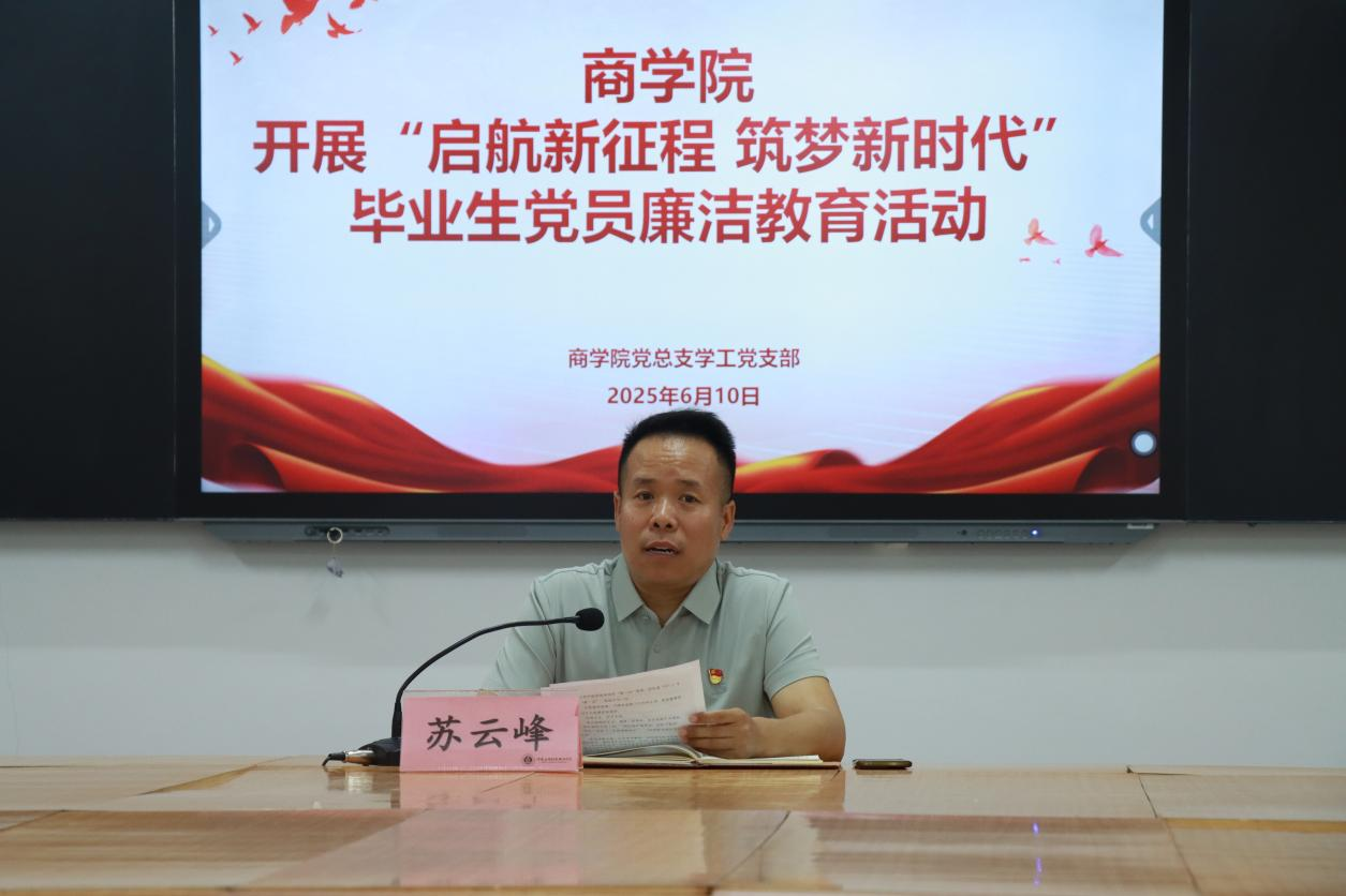 为引导毕业生树立廉洁从业观,增强廉洁自律意识,系好走向社会的“第一粒扣子”,助力其在未来人生道路上坚守纪律底线,6月10日,yl6809永利官网集团于E203教室开展“启航新征程 筑梦新时代”毕业生党员廉洁教育活动。活动由yl6809永利官网集团党总支书记苏云峰主讲,学院副书记王倩、相关辅导员教师及22级毕业生党员参加。