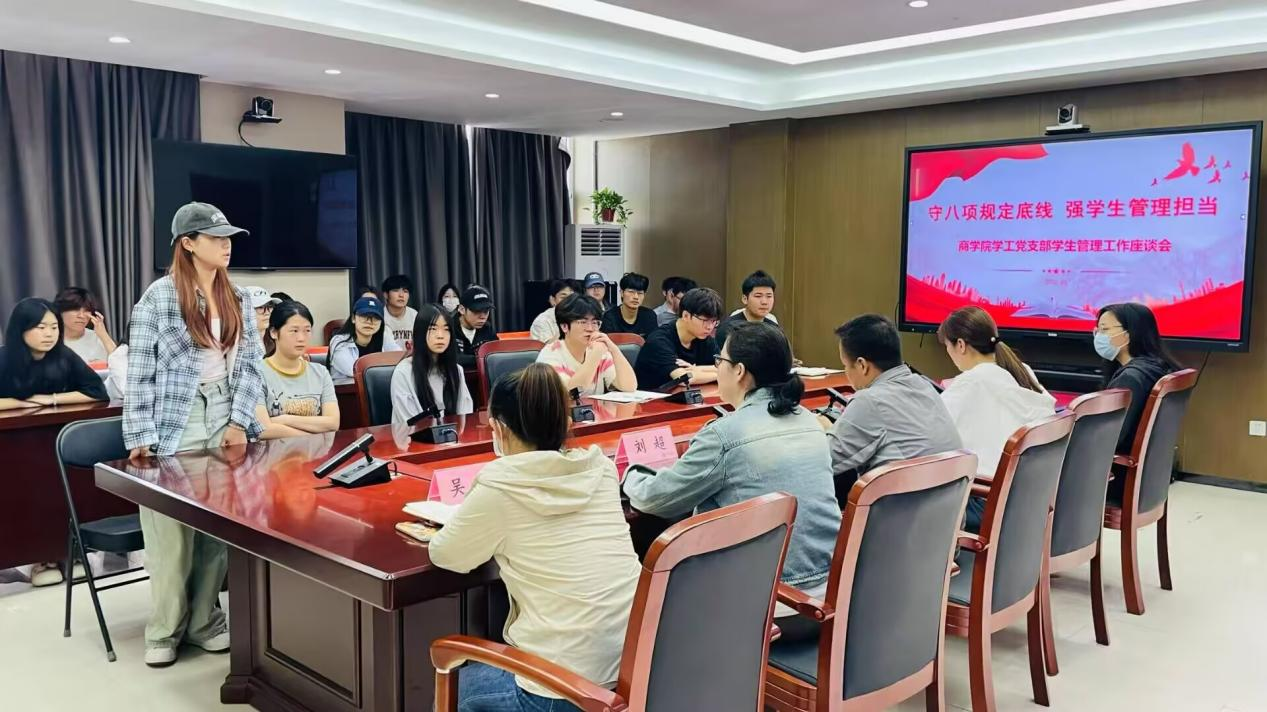 为深入贯彻落实中央八项规定精神,进一步提升学生管理工作水平,4月21日,yl6809永利官网集团学工党支部组织召开了以“守八项规定底线强学生管理担当”为主题的学生管理工作座谈会,学院党总支书记苏云峰、学工办主任刘超、辅导员代表及学生代表参加,会议由学院党总支副书记王倩主持。
