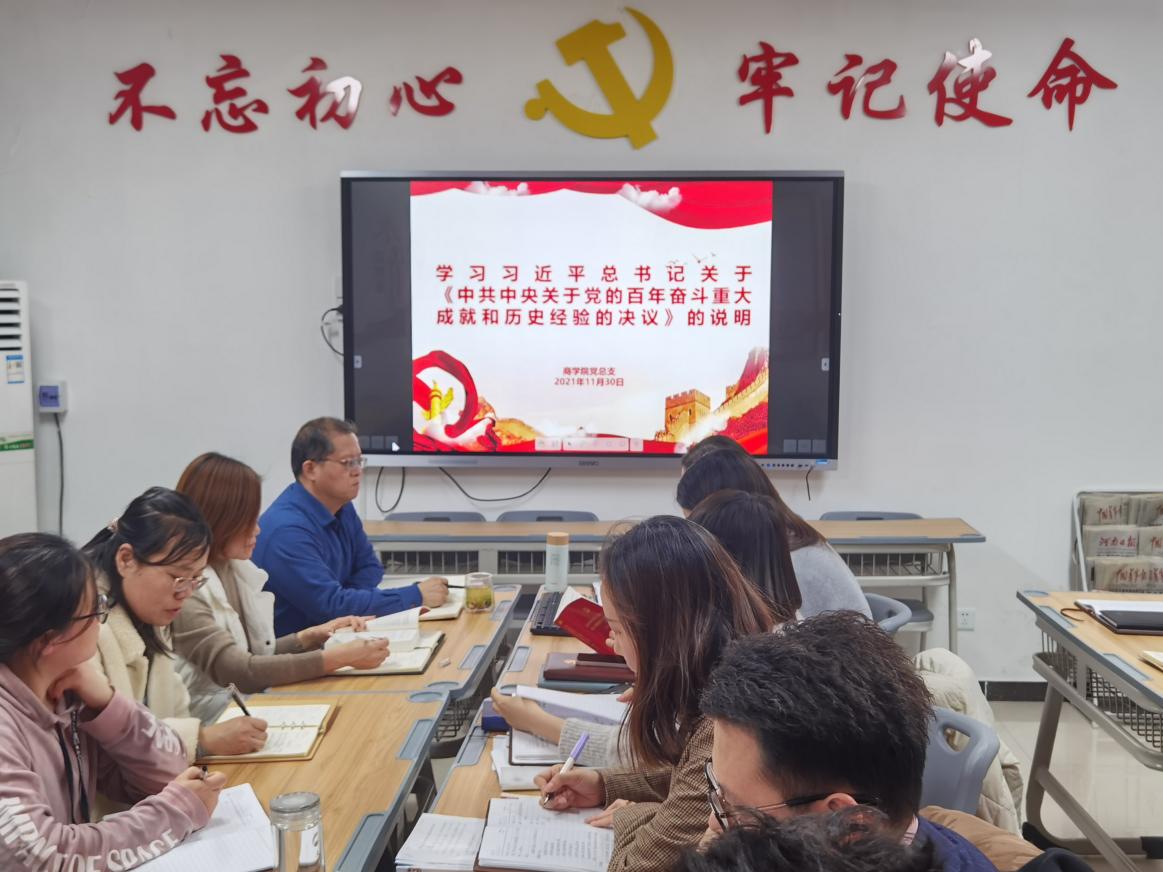 yl6809永利官网集团党总支组织全体教师学习《中共中央关于党的百年奋斗重大成就和历史经验的决议》及习近平关于《中共中央关于党的百年奋斗重大成就和历史经验的决议》的说明