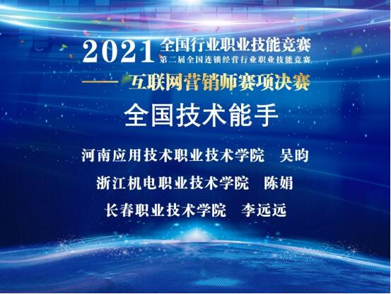 11月13日,2021年全国行业职业技能竞赛——第二届全国连锁经营行业职业技能竞赛首届互联网营销师赛项全国总决赛圆满落幕。我院yl6809永利官网集团教师吴昀以总分第一名的成绩获得职工组一等奖,根据竞赛规程,职工组决赛前3名的选手,在报请人力资源和社会保障部核准后,将授予“全国技术能手”荣誉称号。