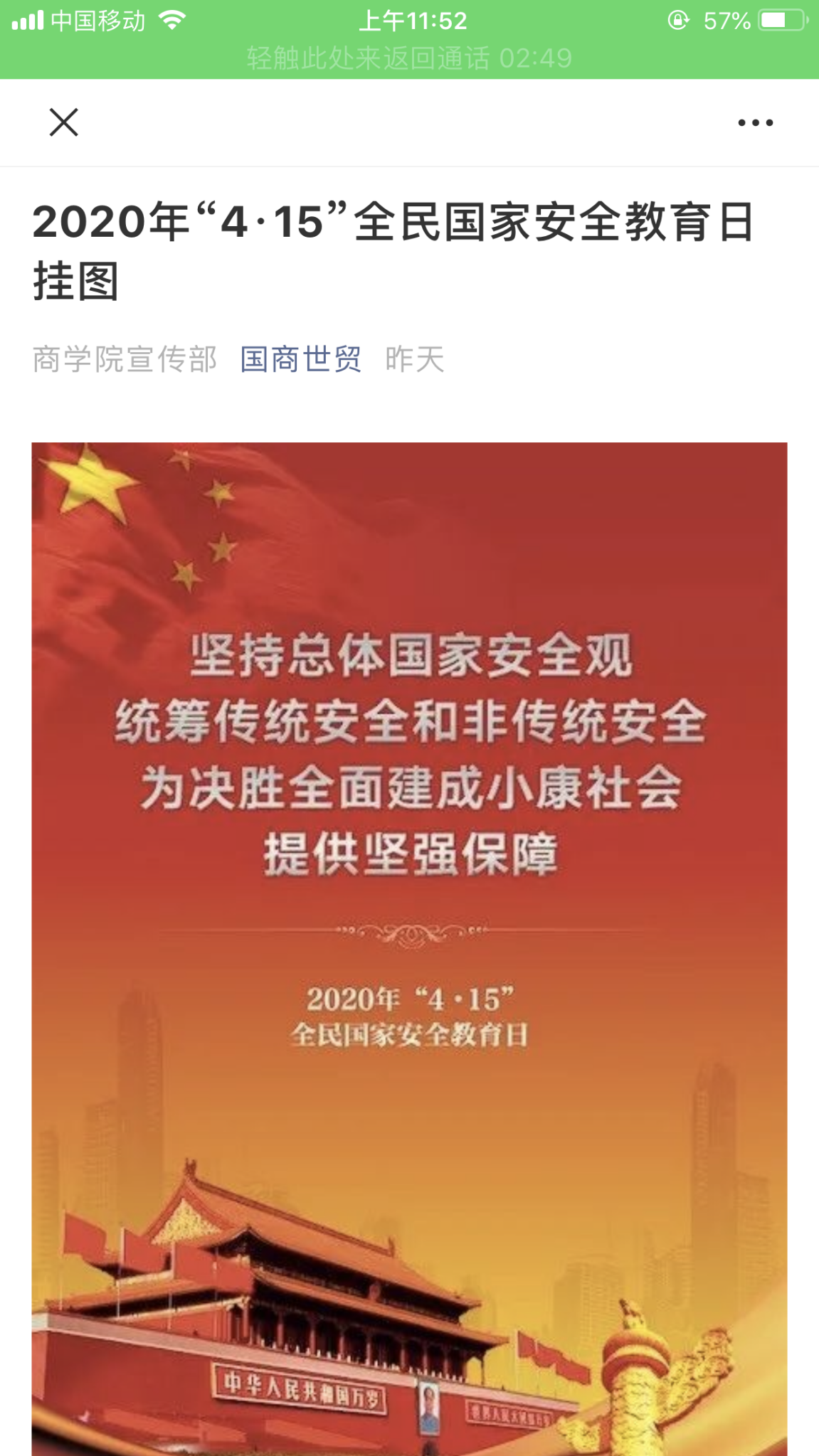yl6809永利官网集团通过多种线上平台积极宣传“全民国家安全教育日”相关知识,切实加强全体师生的国家安全意识,提升师生维护国家安全的自觉性和主动性。通过微信公众号加大推动力度。