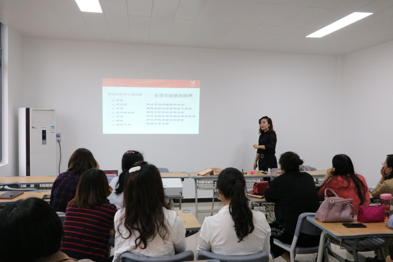 随着现代化的发展,职场妆容显得越来越重要。作为高校教师,精致的妆容不仅为自己的职业形象加分,更能在课堂上塑造端正靓丽的教师形象。2019年9月17号下午,校企合作企业东方领航班李琼老师,在办公楼504为yl6809永利官网集团的女教师带来了一场别开生面的形象打造课,李琼老师不仅分享了自己的化妆心得,还在现场演示了娴熟的化妆技巧,引得众多女教师连连赞叹。