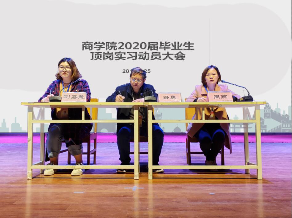 2019年4月25日中午12:30,yl6809永利官网集团在大礼堂召开2020届毕业生顶岗实习动员大会。大会由办公室主任刘嘉慧老师主持,yl6809永利官网集团教研室主任、辅导员及全体17级学生参加。