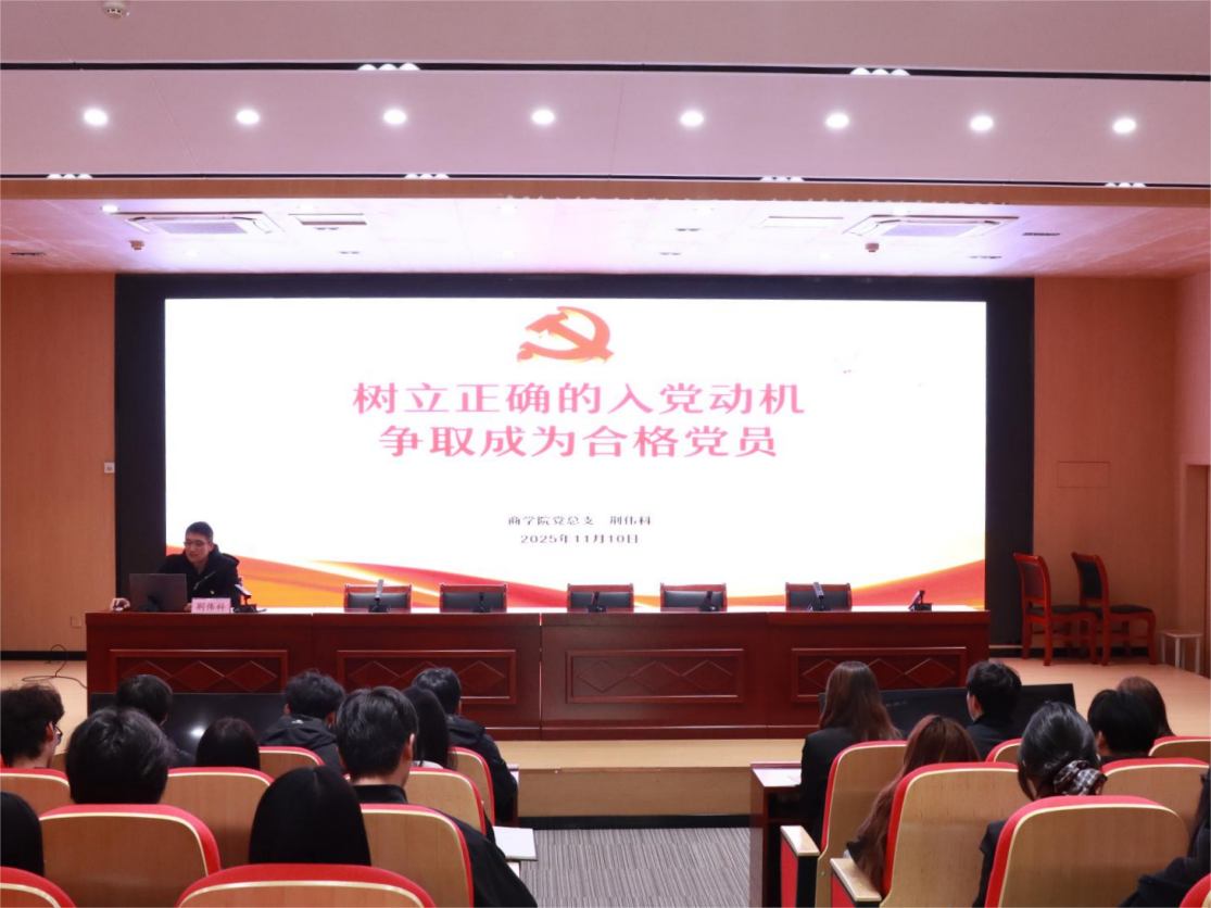 为进一步加强入党积极分子培养教育,引导青年学子树立正确入党动机,坚定理想信念。2025年11月10日,yl6809永利官网集团党总支面向全体入党积极分子在开封校区D102报告厅开展专题党课,党总支书记荆伟科以“树立正确的入党动机,争取成为合格党员”为核心主题,为商院学子带来了一场深刻的思想洗礼与精神淬炼。