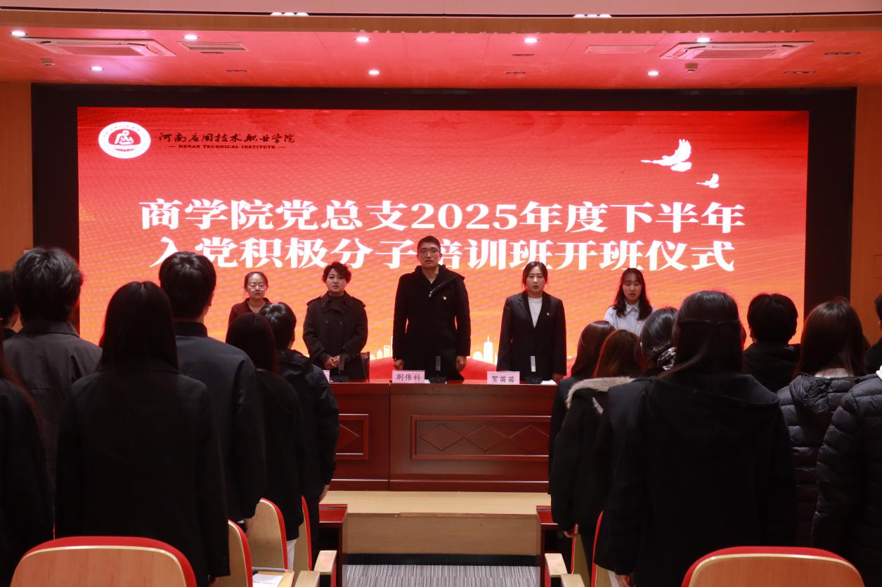 为加强入党积极分子队伍建设,筑牢青年学子信仰之基。11月10日,yl6809永利官网集团党总支在教学楼D102举行2025年度下半年入党积极分子培训班开班仪式。党总支书记荆伟科及学院相关教师出席会议,会议由党总支组织委员贺苗苗主持。