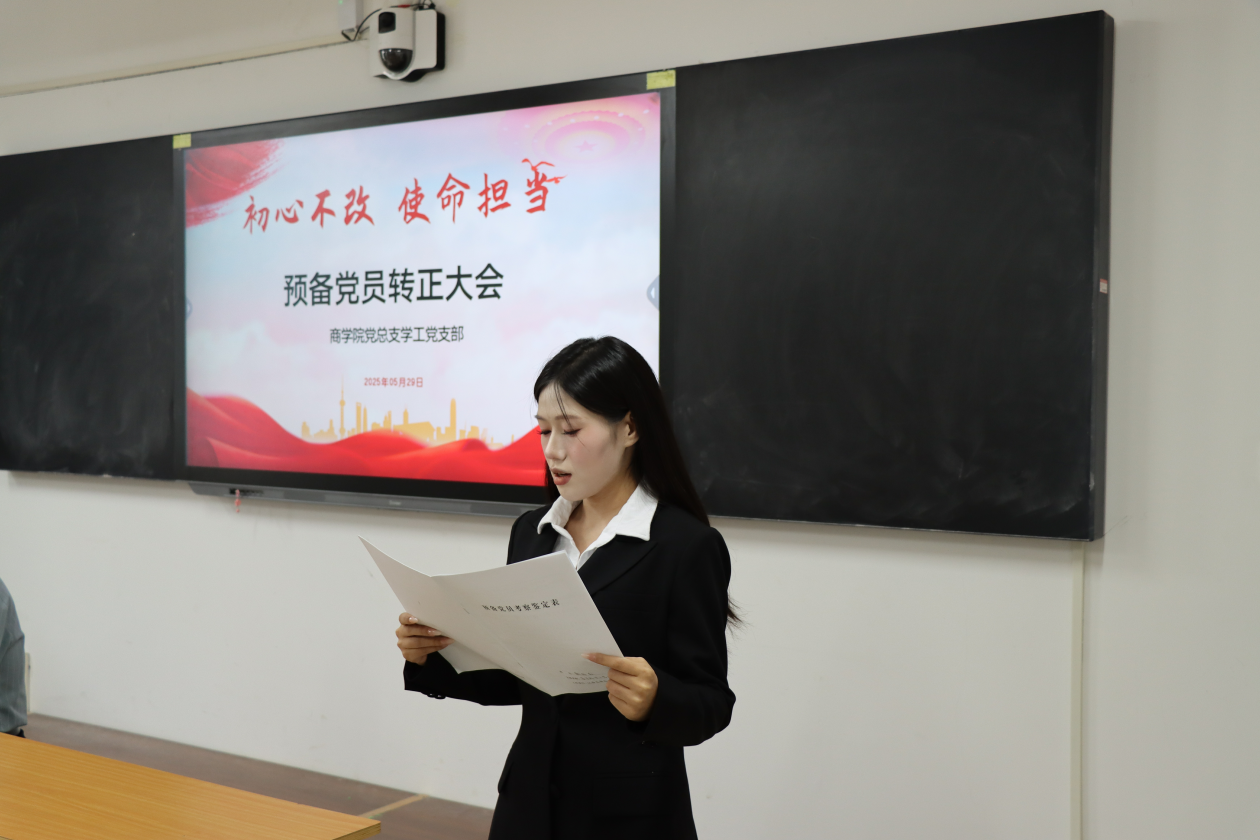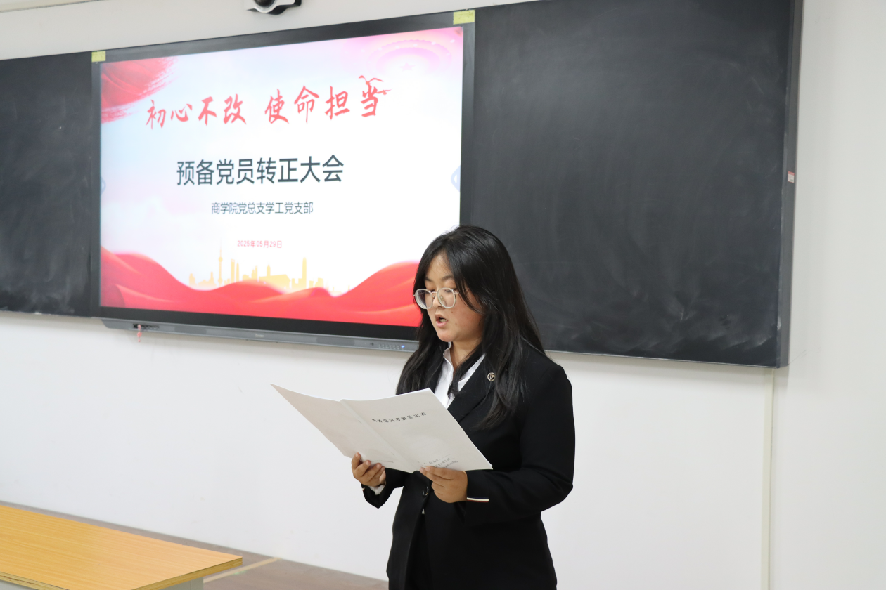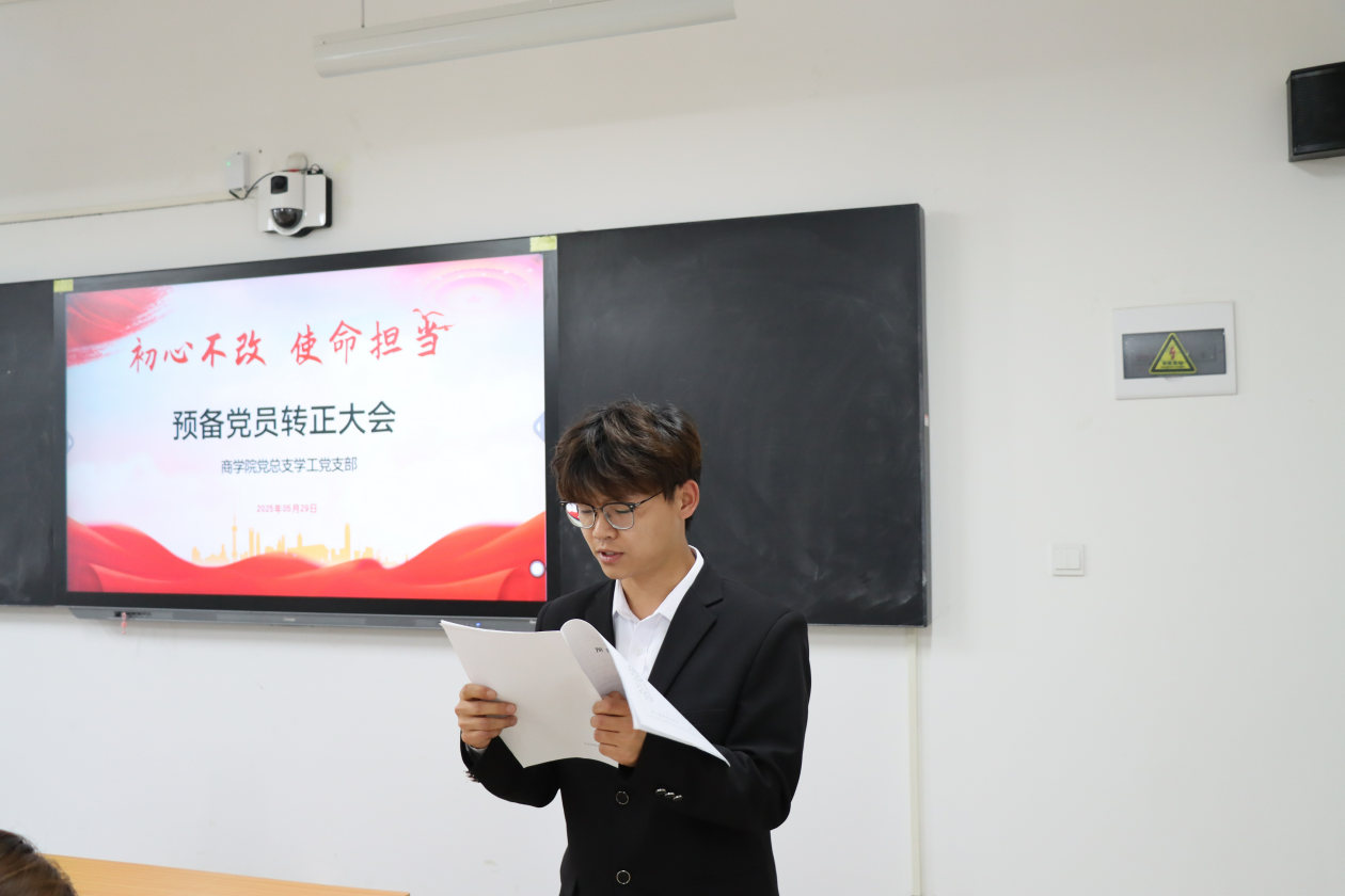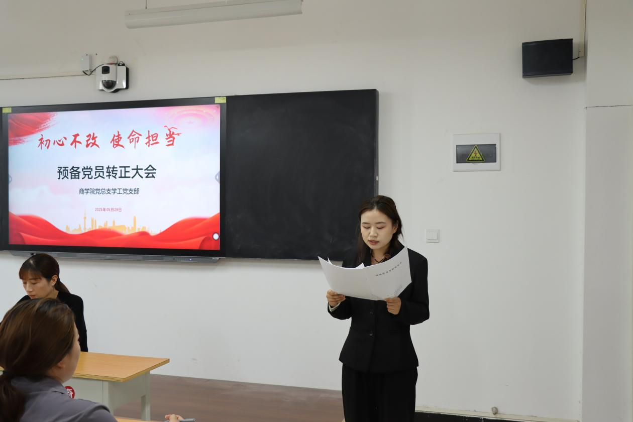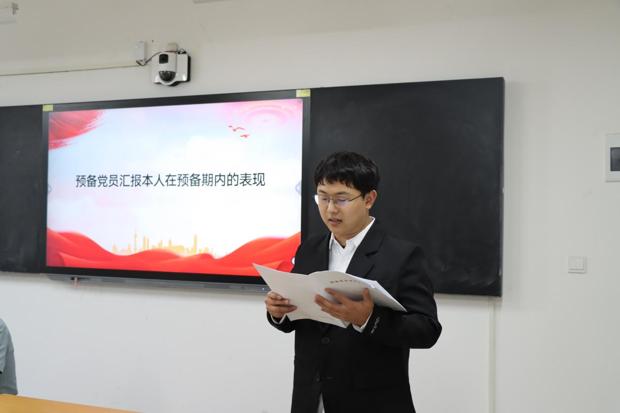 会议伊始,学工党支部组织委员贺苗苗对申请转正的预备党员的培养考察、审查公示等情况进行详细报告,从思想动态到实践表现,全面梳理了预备党员在预备期间的成长轨迹,为后续转正工作提供了坚实依据。