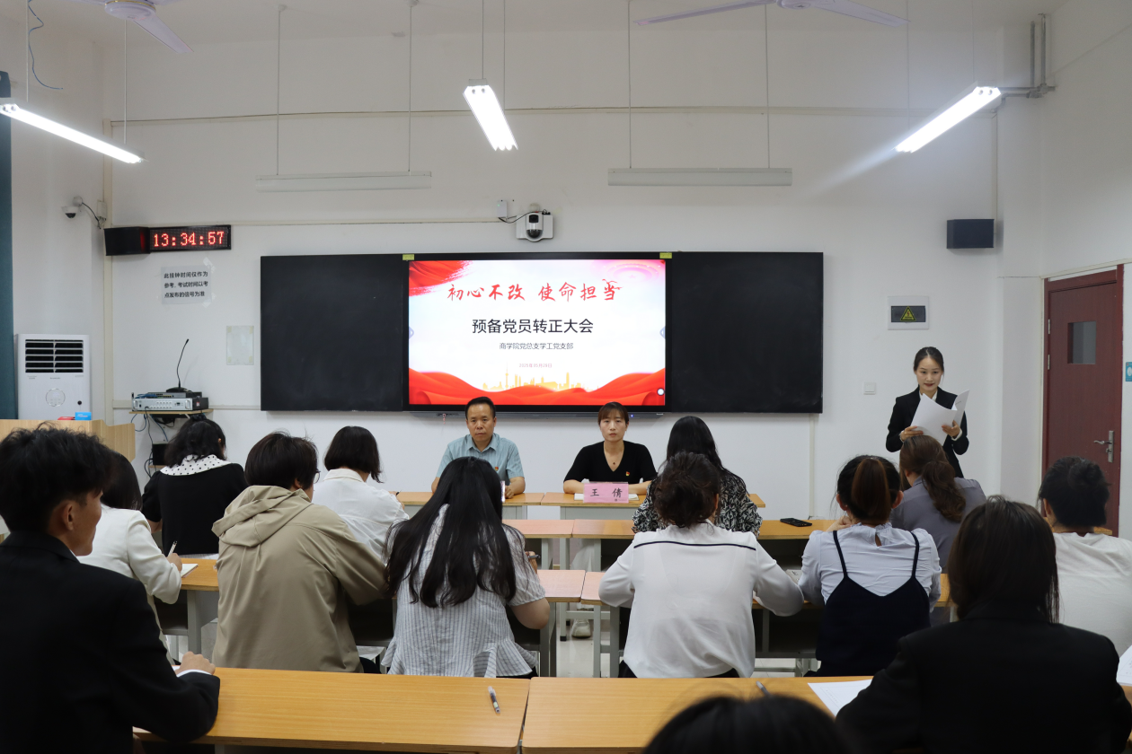 为进一步加强党员队伍建设,严格党员发展程序,确保党员发展质量,5月29日,yl6809永利官网集团党总支学工党支部召开2022级第一批学生预备党员转正大会,讨论关于预备党员丁依瑾等18名同志的转正问题。yl6809永利官网集团党总支书记苏云峰及学工党支部全体党员教师参加,会议由学院学工党支部书记王倩主持。