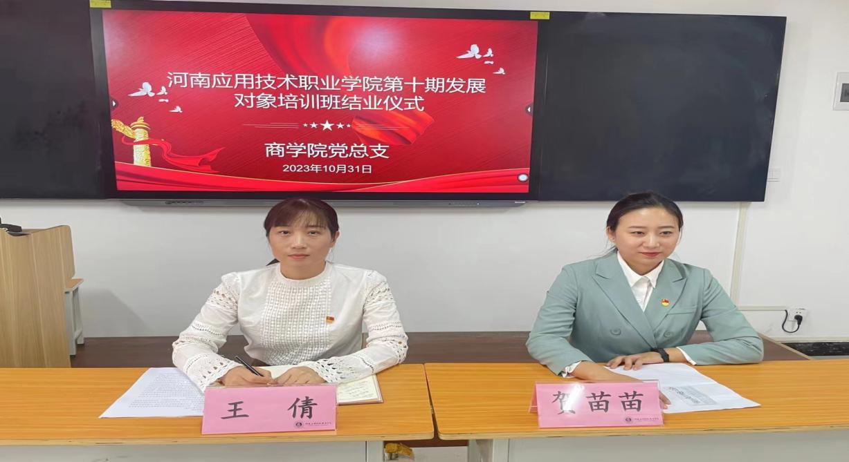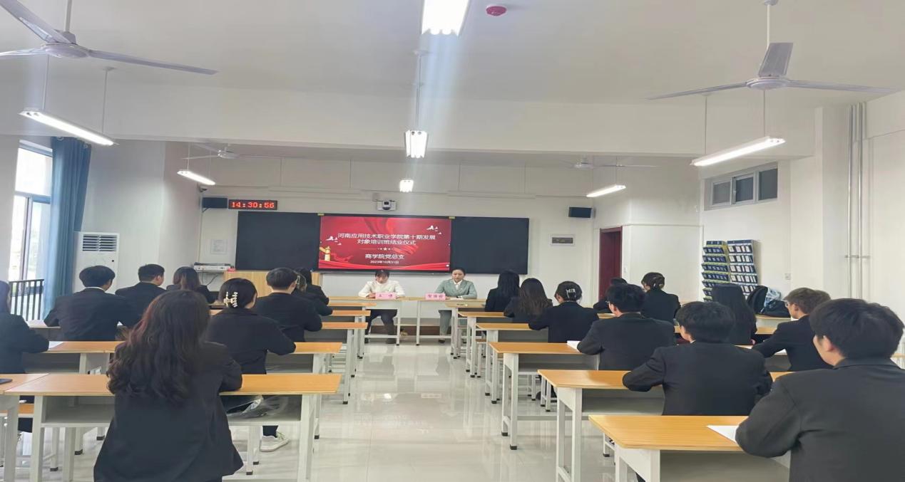 为深入贯彻落实习近平新时代中国特色社会主义思想和党的二十大精神,提升学校党员发展质量,10月27日下午,我校党校第十期党员发展对象培训班开班仪式在郑州、开封两校区同步举行。yl6809永利官网集团2021级22位党员发展对象参与此次党课学习。10月29日晚,22位发展对象同学顺利完成考核,并于10月31日下午在yl6809永利官网集团举行结班仪式,仪式由yl6809永利官网集团党总支副书记王倩,团总支书记贺苗苗主持召开。
