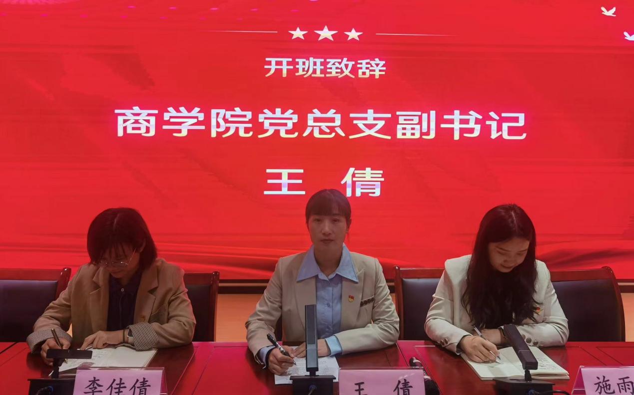 电商2203班铁彤彤同学作为学生代表进行发言,希望通过本次培训班锤炼理想信念,能够做到知行合一,学有所思、学有所获、学有所成。