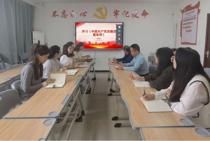 会上,刘嘉慧领学了相关法规的重点内容,首先全体教师针对党徽和党旗制作、使用、管理等24条内容进行了详细学习,其次学习国旗和国歌规范性使用的内容,提升尊重和维护国旗、国歌、国徽尊严的自觉性和法律意识,切实维护好国旗、国歌、国徽的尊严。