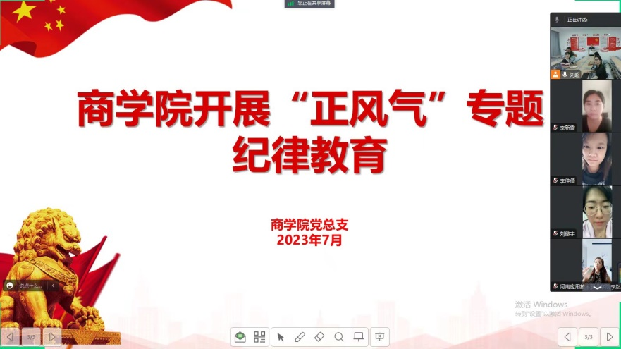 为深入学习宣传贯彻党的二十大精神和习近平总书记关于严明党的纪律和规矩的重要论述,全面加强党的纪律建设,根据学校发布的《关于开展“纪律教育活动月”暨第三季度“明方向、立规矩、正风气、强免疫”专题纪律教育的通知》文件要求,7月25日,yl6809永利官网集团党总支开展“正风气”专题纪律教育,会议采用线上线下相结合的方式进行,由yl6809永利官网集团党总支书记苏云峰主持,yl6809永利官网集团全体教师参加会议。