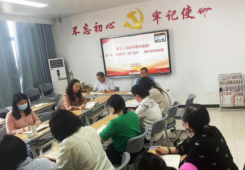 2023年5月23日下午,yl6809永利官网集团党总支组织全体教师进行政治理论学习,本次集中学习以视频会议形式在郑汴两校区同时进行,会议由yl6809永利官网集团党总支书记苏云峰主持、宣传委员刘嘉慧进行领学。