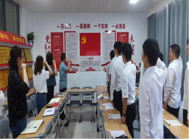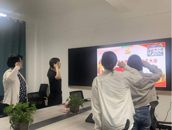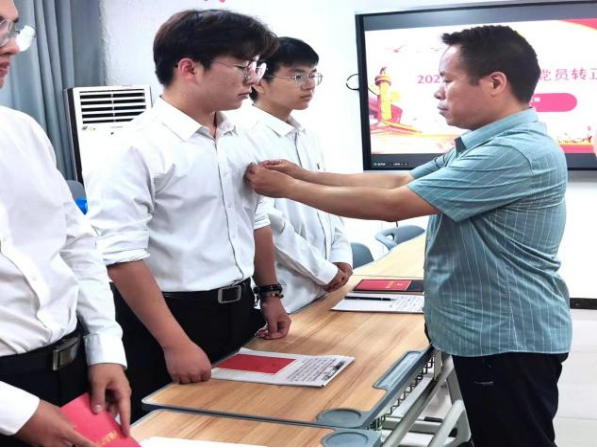 最后,苏云峰给各位转正的同学佩戴党员徽章,并宣读入党誓词,同时希望在接下来的日子里,如期转正的同志们在未来继续发挥先锋模范作用,以身作则。