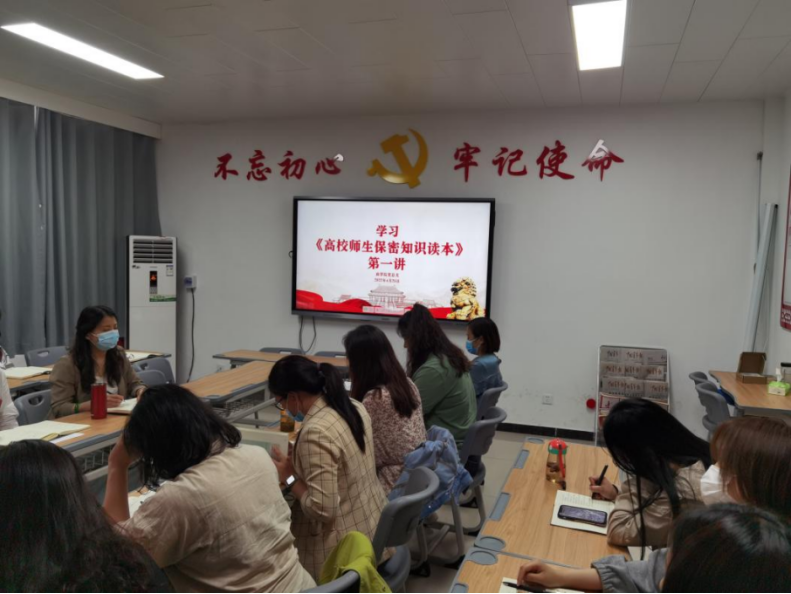 会上,办公室主任刘嘉慧、教学办主任王珂领学了《高校师生保密知识读本》第一讲的内容。书记周燕表示要深刻认识到保密工作的重要性,尤其要注意在教学、科研、对外交流等方面的保密性,强化保密意识,杜绝泄密隐患,筑牢保密防线。