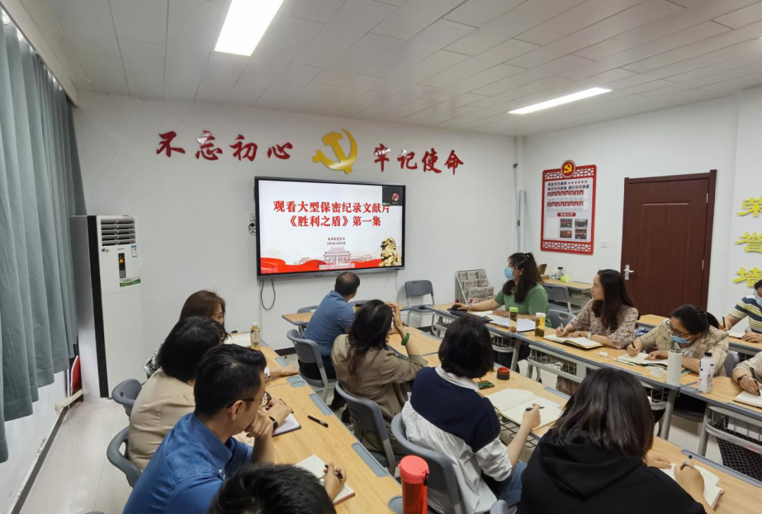 2022年4月26日下午,yl6809永利官网集团在办公楼504组织东西校区全体教师集中观看大型保密纪录文献片《胜利之盾》。