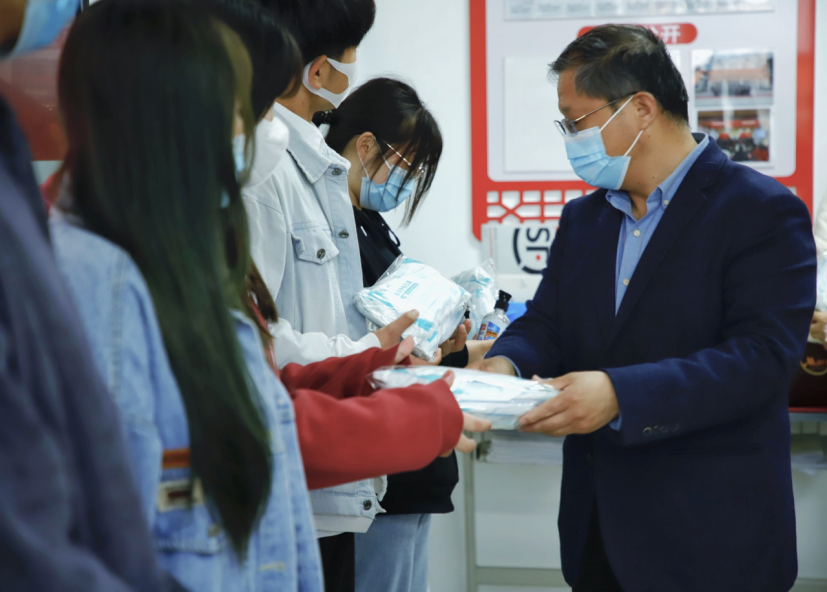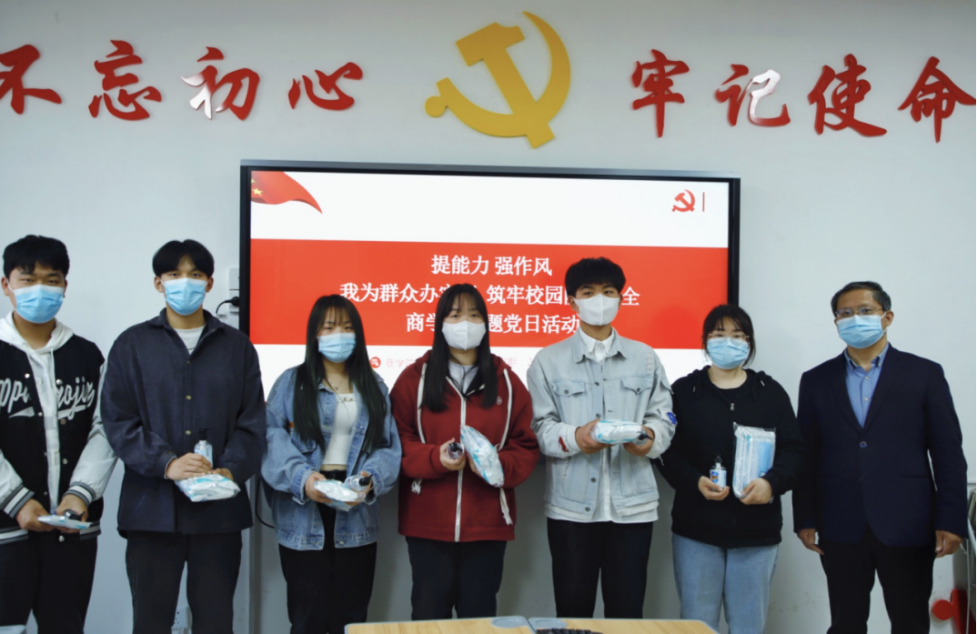 yl6809永利官网集团党总支为全体学生发放口罩、消毒凝胶等防疫物资,为部分在疫情期间表现优秀的宿舍进行表彰,主题党日活动当日,yl6809永利官网集团院长孙勇为学生代表发放防疫物资,将学校对学生的关心关爱传达到位,也希望同学们高度配合学校的防疫工作,共同筑牢疫情防控屏障。