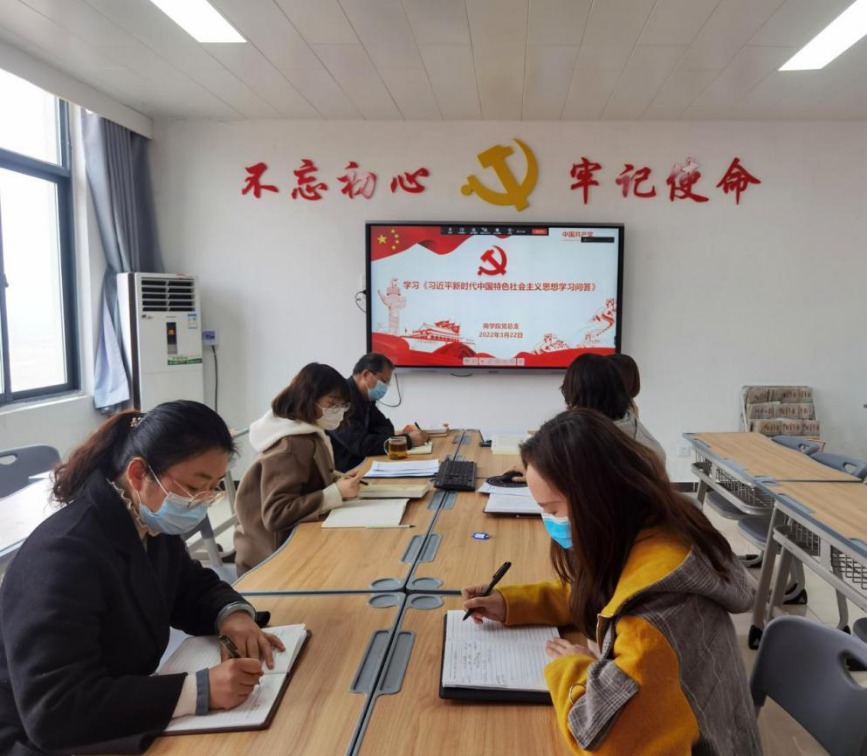 2022年3月22日下午,yl6809永利官网集团组织全体教师政治理论学习及研讨。会议学习了《习近平新时代中国特色社会主义思想学习问答》之思想之旗领航向。根据疫情防控需要,会议以视频方式进行,学院管理干部在主会场办公楼504参会,其余教师通过钉钉视频参会。会议由党总支书记周燕主持。