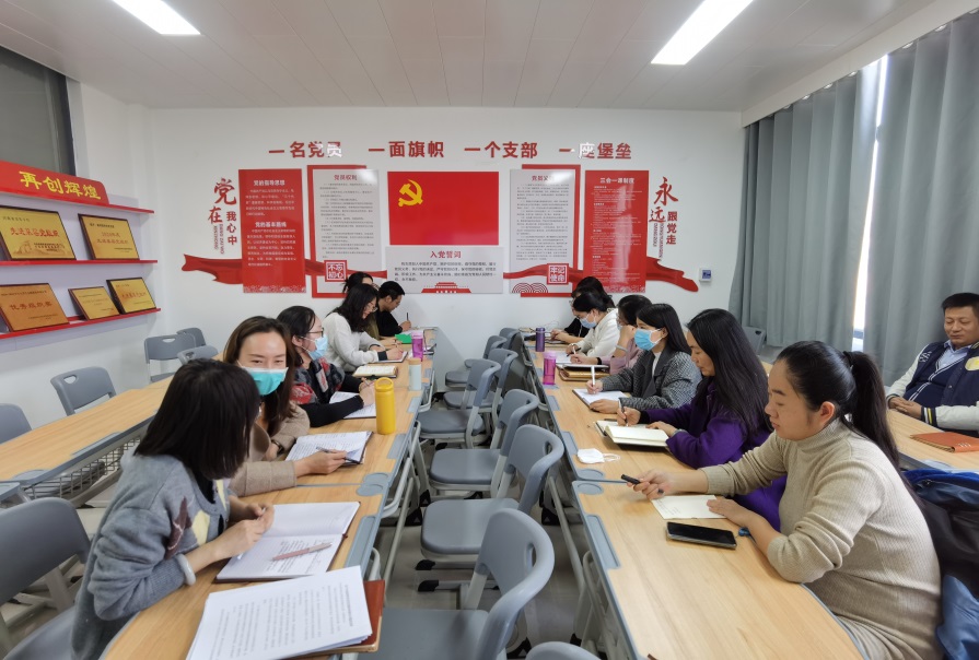 会上,团总支书记李力领学了第十九届六中全会公报,教务办主任王珂领学了河南省第十一届党代会重要精神。周燕书记表示,党的十九届六中全会,总结了一百年来我们党从胜利走向胜利的伟大历程。在中国共产党的领导下,我们实现了第一个百年的奋斗目标,正意气风发地向着全面建成社会主义现代化强国的第二个百年奋斗目标迈进。她强调:作为高等教育工作者,我们要把学习和宣传贯彻好党的十九届六中全会精神和河南省第十一届党代会精神作为当前的首要政治任务,不仅要学好学深学透,还要勤思善悟会讲,潜移默化的转化到专业课教学中,加强课程思政建设,让会议精神深入课堂、深入课程、深入教学、深入心田。所有教师更要不忘初心,牢记使命,坚持从党的百年奋斗历程中汲取精神力量,竭力为党和国家培养德才兼备的社会主义建设者和接班人。