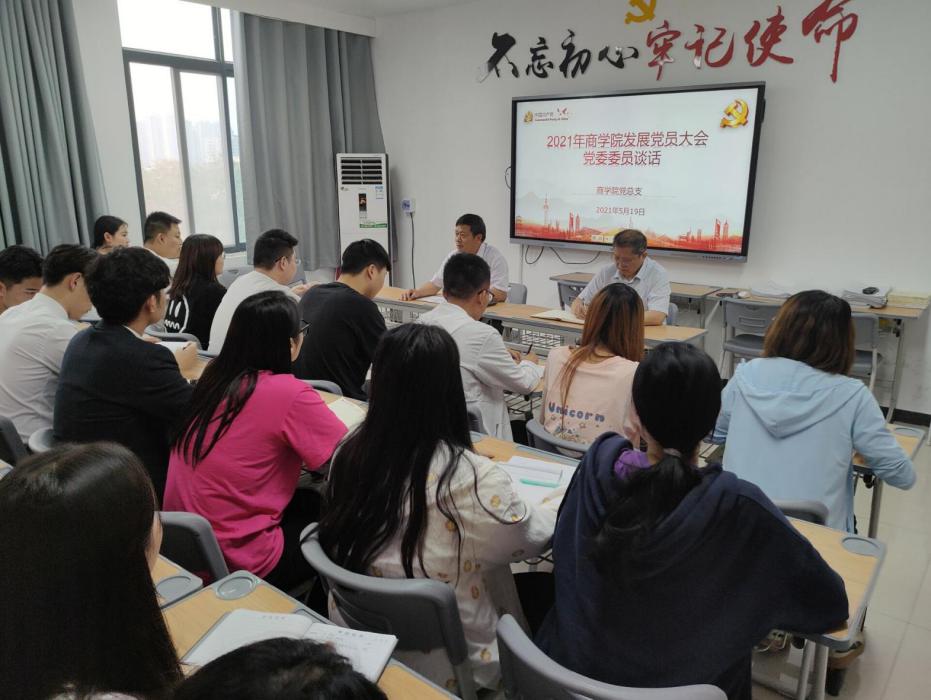 2021年5月19日下午,学校党委委员、副校长刘振民在yl6809永利官网集团党员活动室504同36名学生预备党员开展入党谈心谈话,yl6809永利官网集团院长孙勇主持会议。