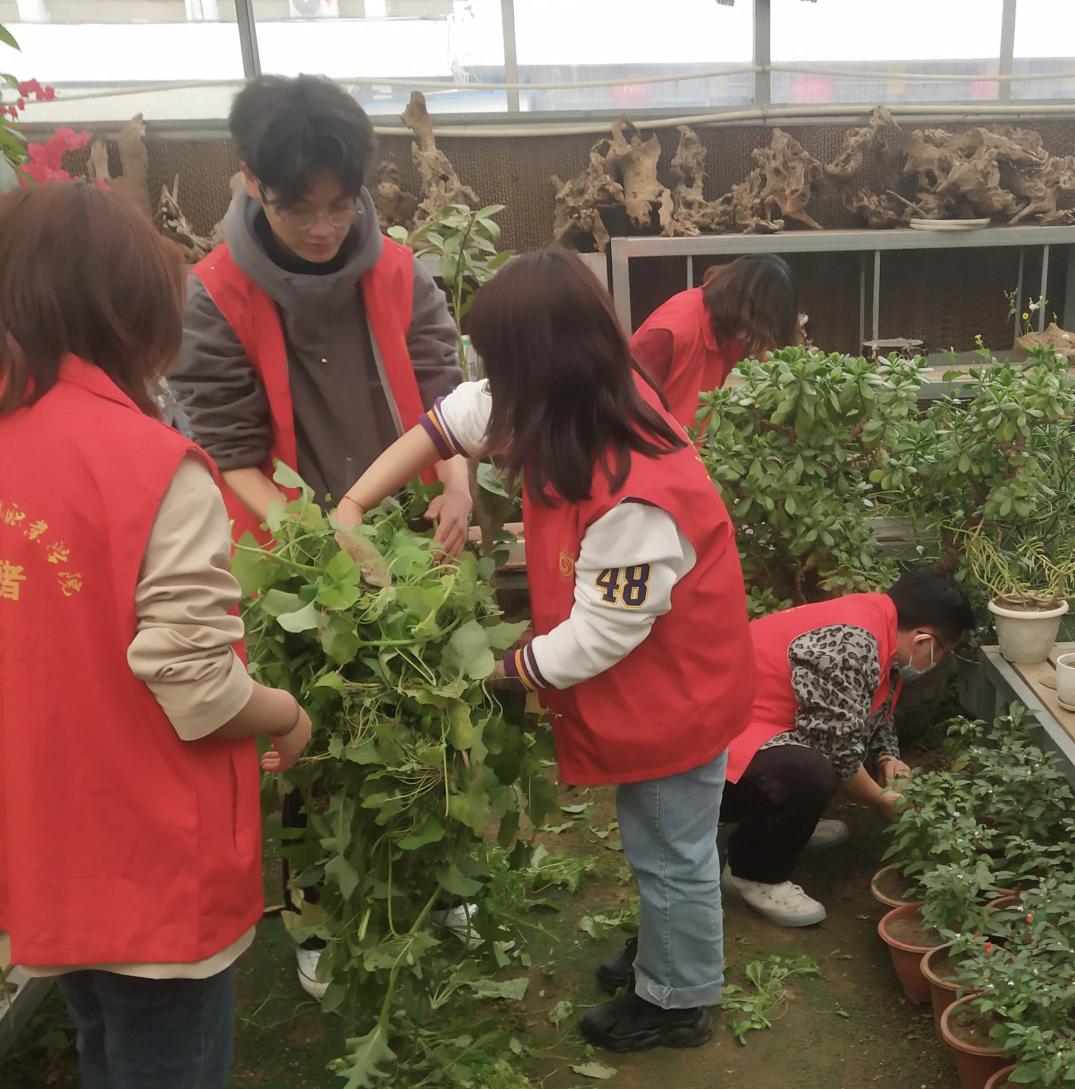 3月12日下午,五一公园内绿植花房里,到处都是身着红色马甲志愿者,他们弯腰弓背,清理花房里的垃圾,在工作人员的指导下为绿植松土、浇水、施肥、修整,补种花草,清理枯叶等等。很多同学是第一次干这种农活,有些还需要花房里工作人员示范演示,但他们虚心接受指导,不挑活,不怕脏,不怕累。尽管手指上沾满了泥巴,脸上却露出会心的笑容。志愿服务持续了两个多小时,同学们带走了花房里的“不速之客”,留下了绿色、整齐与美丽,留下了志愿服务的爱心与奉献。