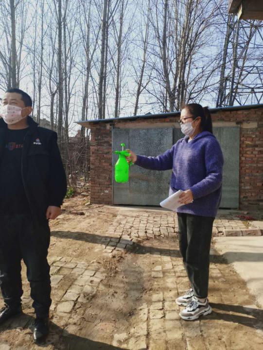 网营1901班谢晓洁同学对大流乡流动人员进行消毒
