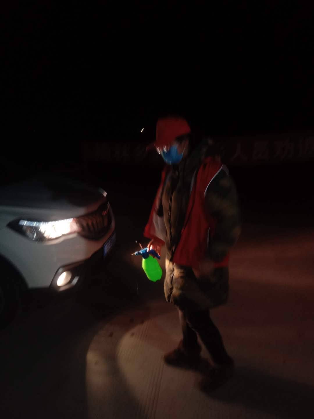 空乘1802周宇涵为拦截外来车辆消毒