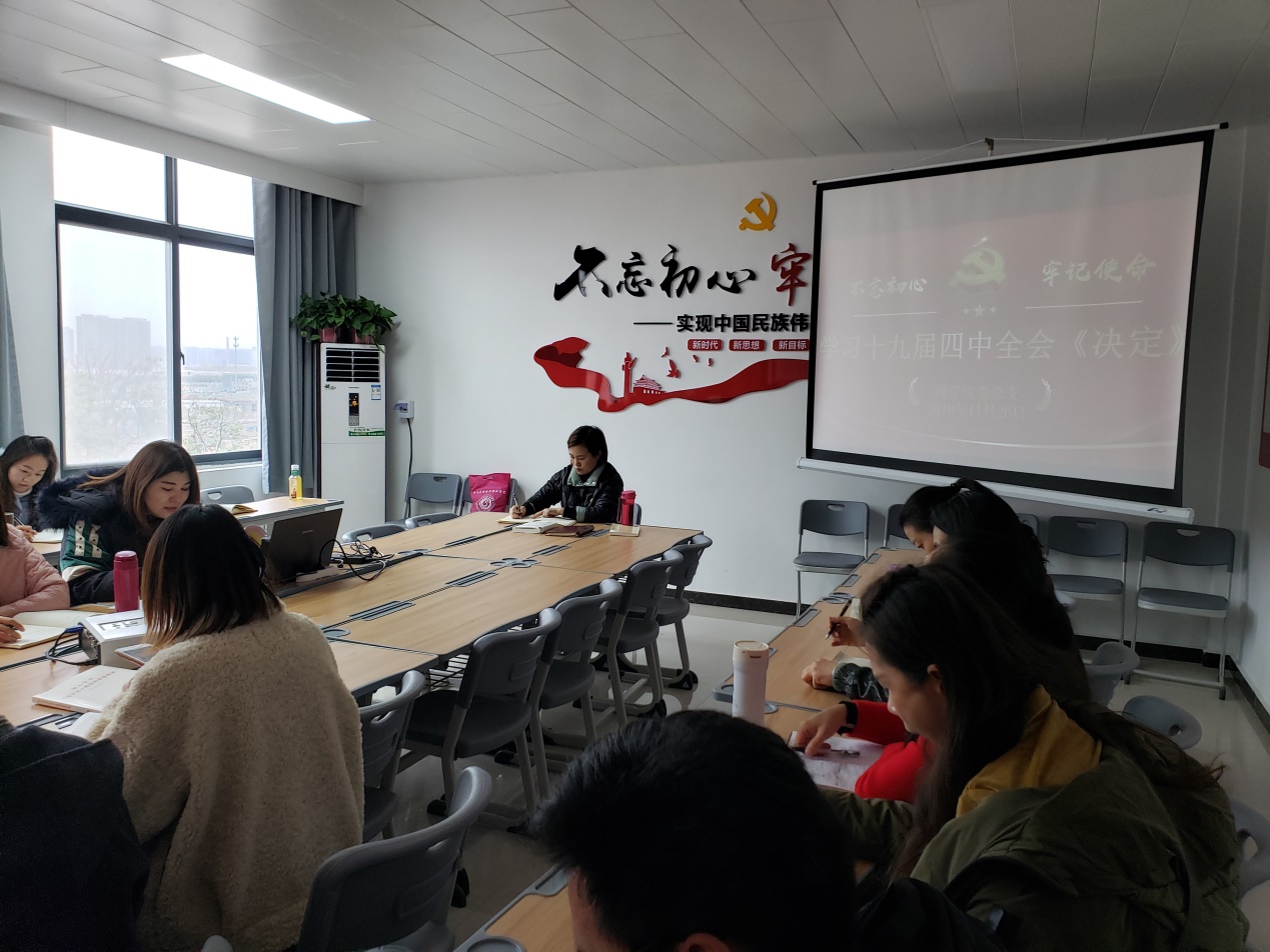 为持续推动我院“不忘初心、牢记使命”主题教育走心走实,及时跟进学习内容,在学深悟透新思想上再提升,2019年11月26日下午,yl6809永利官网集团党总支组织全体教师在办公楼504活动室举行党的十九届四中全会精神专题学习会。党总支副书记周燕书记主持。