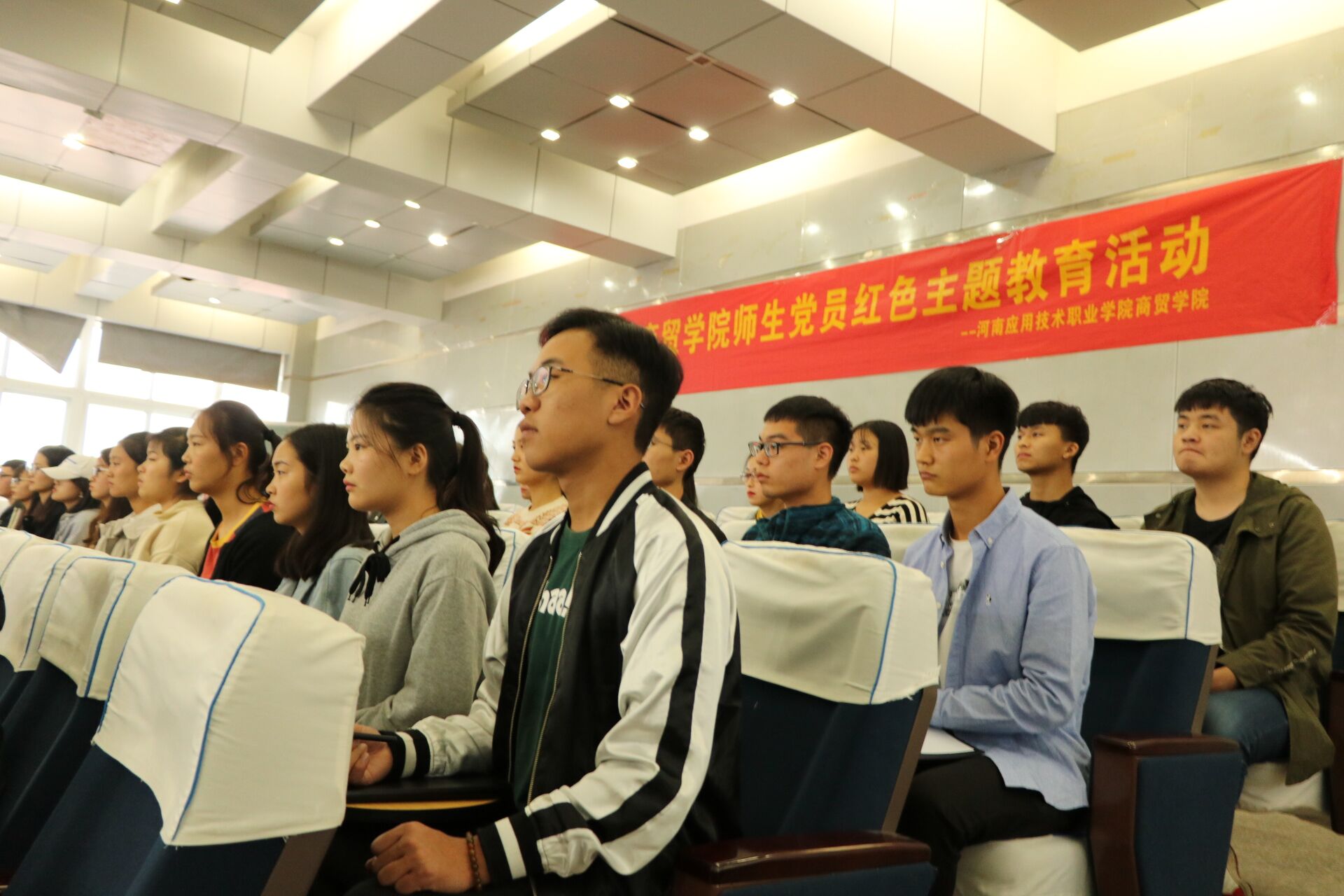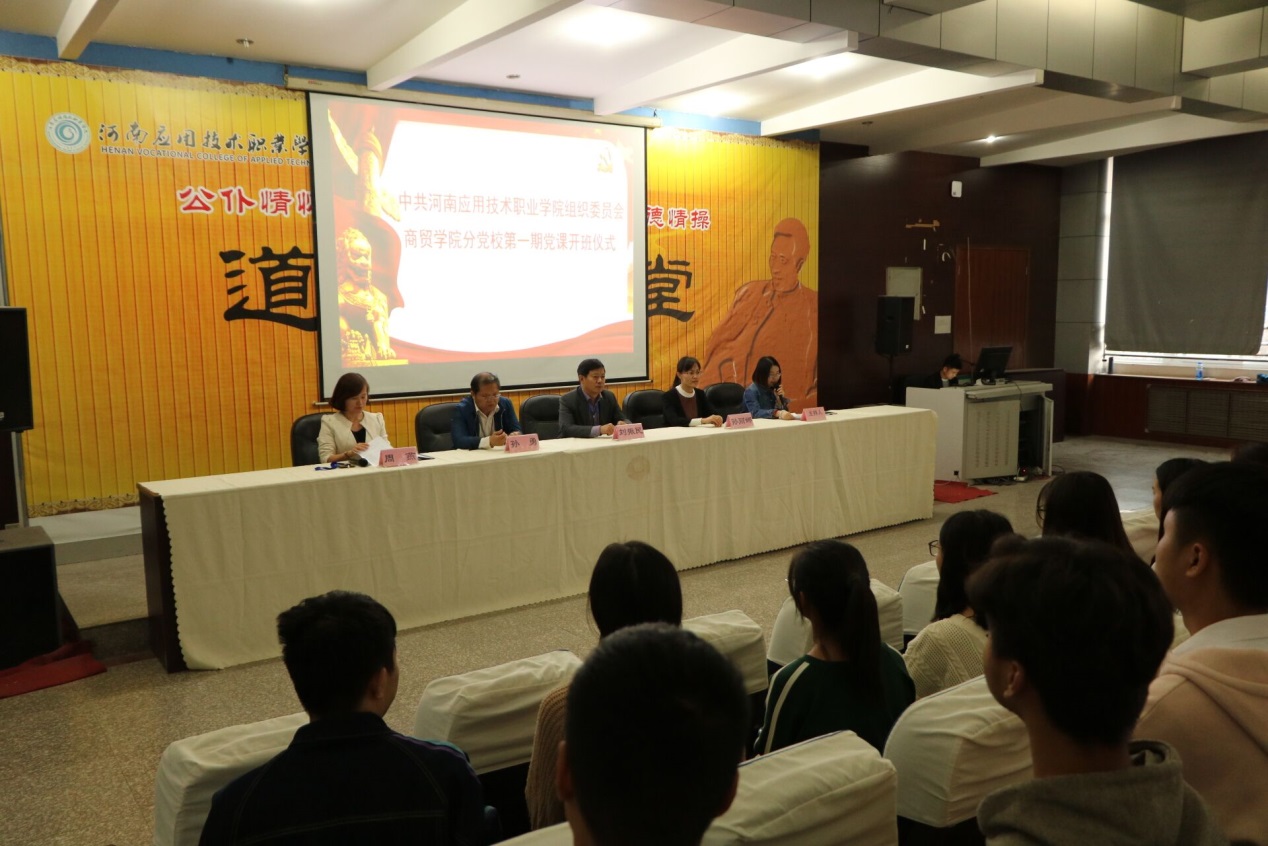 2018年10月 17日下午,商贸学院党总支在二号教学楼学术报告厅举办中共yl6809永利集团组织委员会商贸学院分党校第一期党课开班典礼。学校党委办公室刘振民处长、组织人事处孙丽娜副处长,商贸学院分党校校长周燕书记以及副校长孙勇院长出席。典礼由院团总支李力书记主持,商贸学院114名入党积极分子参加。