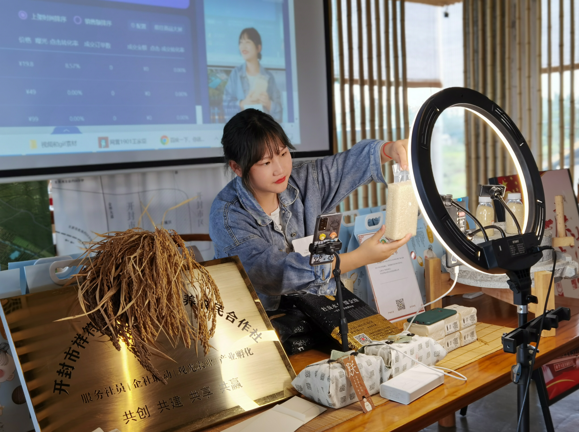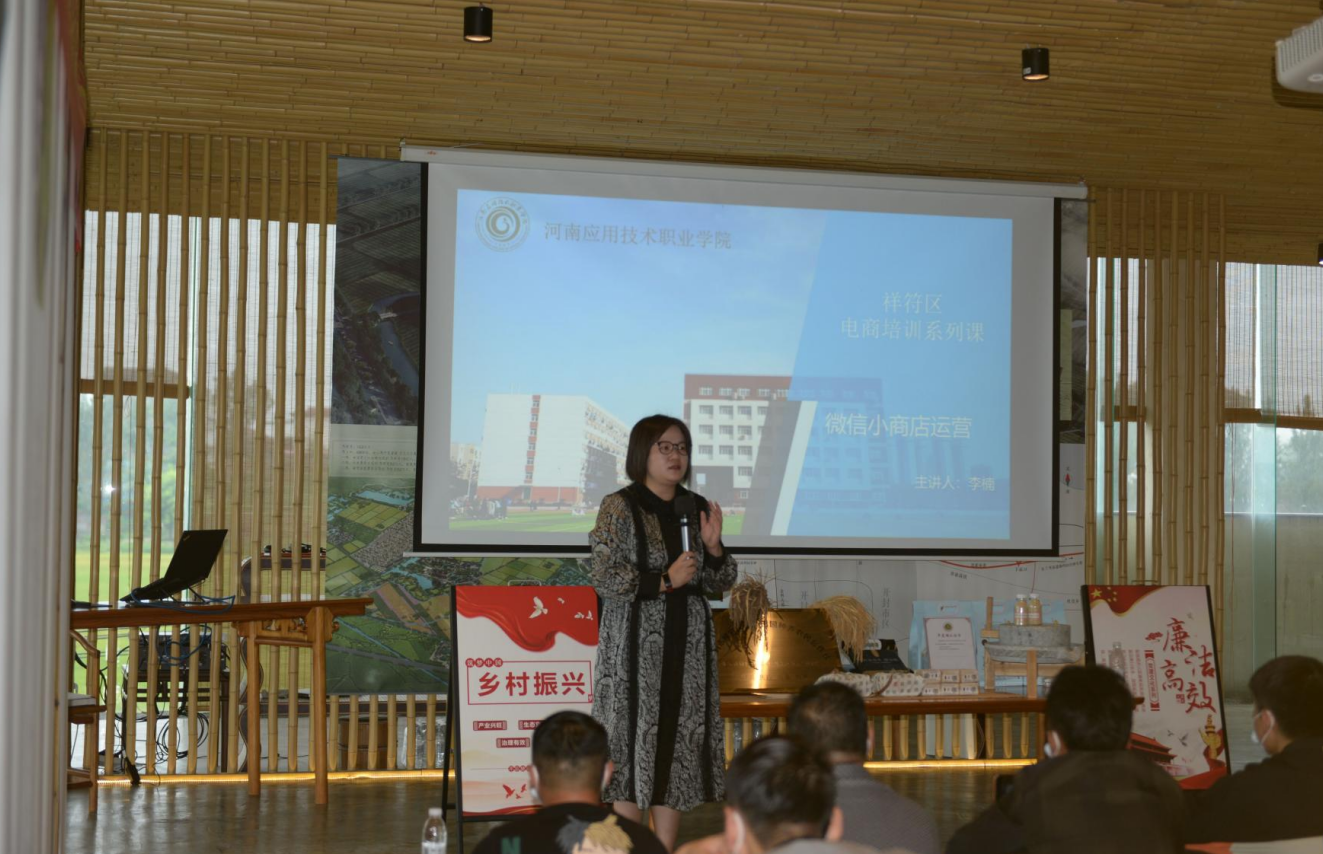 本次培训是受开封市祥符区商务局邀请,由yl6809永利官网集团李楠、吴昀、朱海三位老师主讲,电子商务工作室的曹颖、段笑迎、于秋东三位同学作为技术助教开展的一次旨在提升乡村电商人才素养的培训。李楠老师从微信小商店、爆款文案两个方面讲解了新时代农村电商如何通过社交平台实现流量增长;吴昀老师讲解了如何通过短视频+直播的电商运营模式发展乡村旅游和农产品产业;朱海老师带领学员现场实操短视频拍摄和剪辑;曹颖、段笑迎、于秋东同学现场展示了一场“直播带货真人秀”,娴熟的直播技术在短短30分钟的时间,引流一千多人围观。