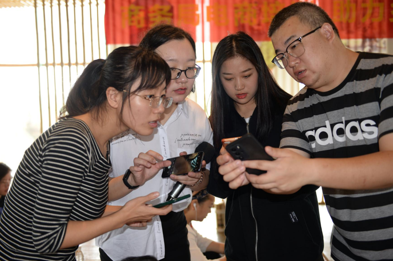会议室坐满了致力于乡村电商事业的村民,他们有些是电商行业的从业者,有些是有意向做电商的普通村民,有的学员甚至老少结队“全家总动员”一起学电商,他们或在聆听电子商务技术服务队的讲解,或在用手机录制直播演示的视频,或在接受专业教师指导,现场学习气氛热烈。