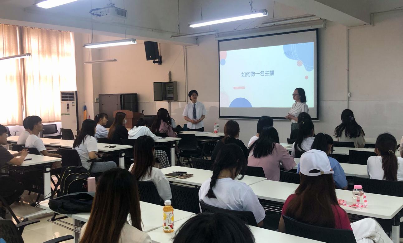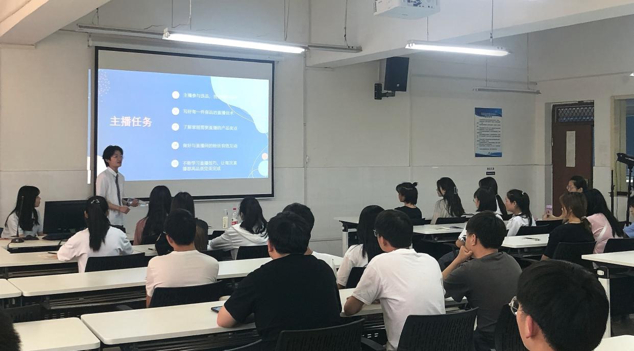 为满足企业对直播人才的需求,提供精准人才服务,多形式、多渠道探索电商主播人才培训模式,提升主播销售专业素养,壮大电商直播人才队伍,yl6809永利官网集团电商工作室于5月27日下午在E602开展了电商直播培训。本次活动邀请了来自海一云商的优秀老师,他给同学们进行了一场“如何成为一位优秀主播”的主题培训,yl6809永利官网集团网络营销、电子商务等专业的同学参加了培训。