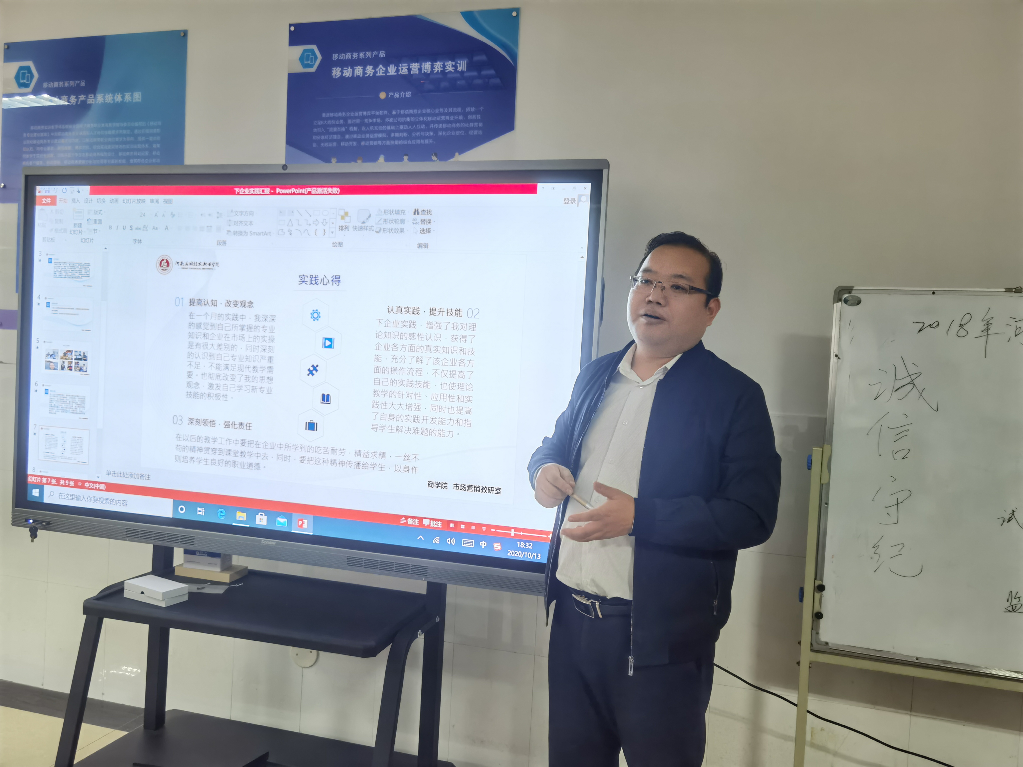 为全面贯彻落实《国家职业教育改革实施方案》,提升教师实践动手能力,提高教育教学水平,今年暑假,yl6809永利官网集团组织14名教师分别到肯德基、京东物流、正大集团等单位参加企业实践锻炼。10月13日晚,一场检验教师暑期企业实践情况,总结实践锻炼成果的报告会在实训楼614举办,yl6809永利官网集团全体专兼职教师参加了本次会议。