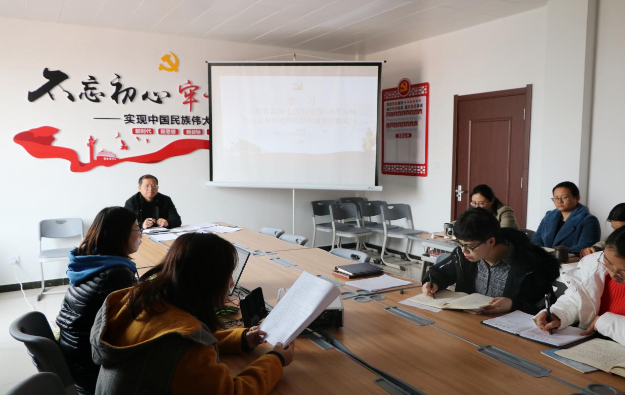 2019年是我校的“师德师风”建设年,良好的师德师风是全面贯彻党的教育方针,培养合格人才的根本保证。yl6809永利官网集团于2019年12月17日组织全体教师集体学习了《教育部等七部门印发关于加强和改进新时代师德师风建设的意见》。yl6809永利官网集团党总支书记,院长孙勇主持。