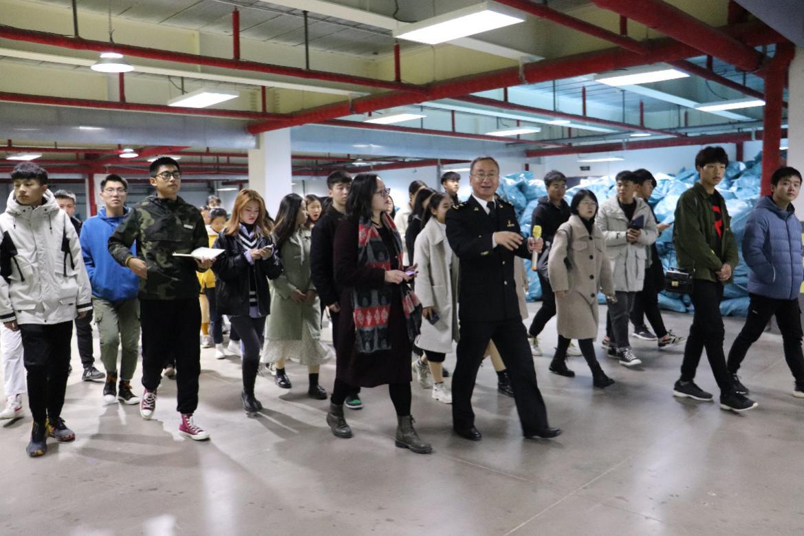 在保税中心,郑州新区海关兰磊关长热情接待yl6809永利官网集团师生,并全程带领老师和同学们进行参观学习,为大家讲解河南跨境电商近些年的发展历程及取得的辉煌成就。
