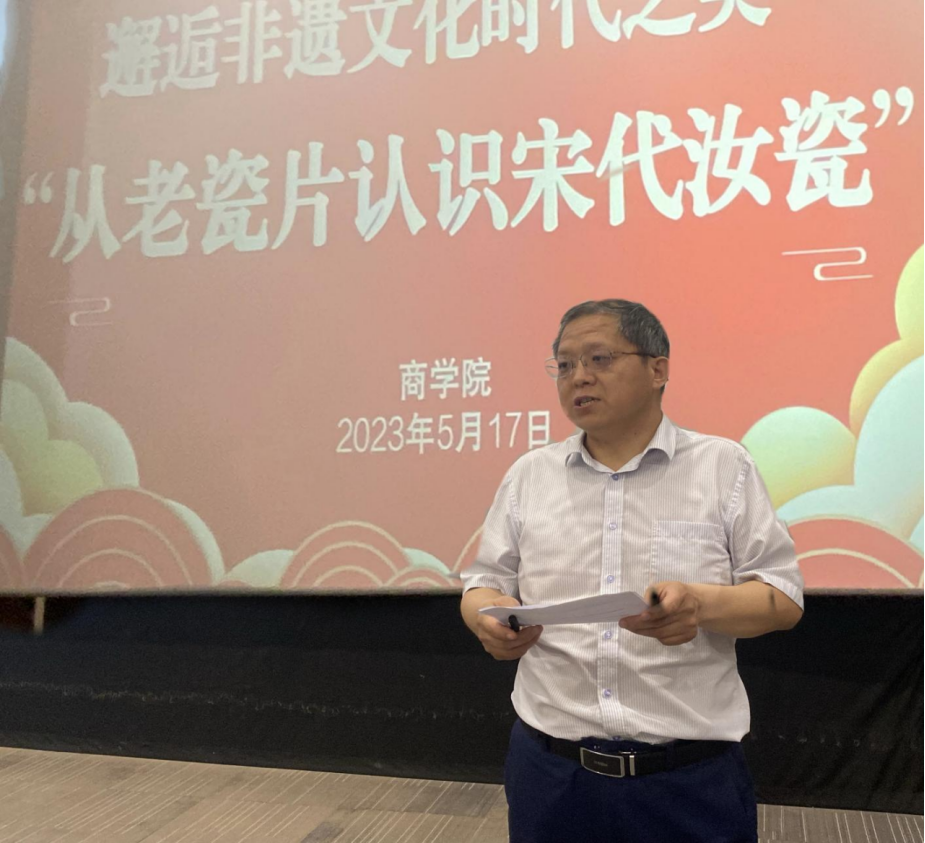 为了进一步弘扬中华传统文化,践行工匠精神。5月17日下午,yl6809永利官网集团特邀河南省工艺美术大师、宝丰县专业技术骨干人才、省级非物质文化遗产代表性传承人、中国传统技艺大师王国奇进入校园,在1号实训楼D1(公共艺术教室)举行了专题讲座,讲座主题为“从老瓷片认识宋代汝瓷”。yl6809永利官网集团院长孙勇、yl6809永利官网集团部分教师和学生聆听了此次讲座。