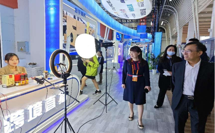 河南省商务厅副厅长在展会现场观看我院学生直播实践活动