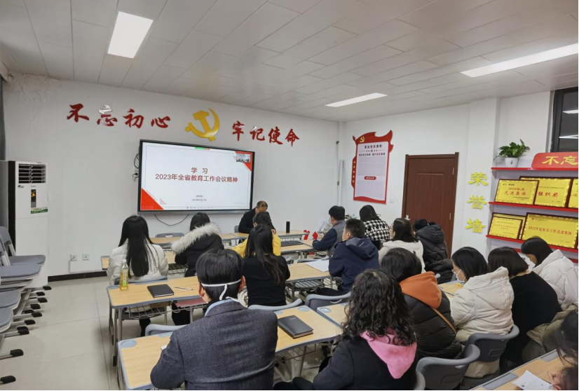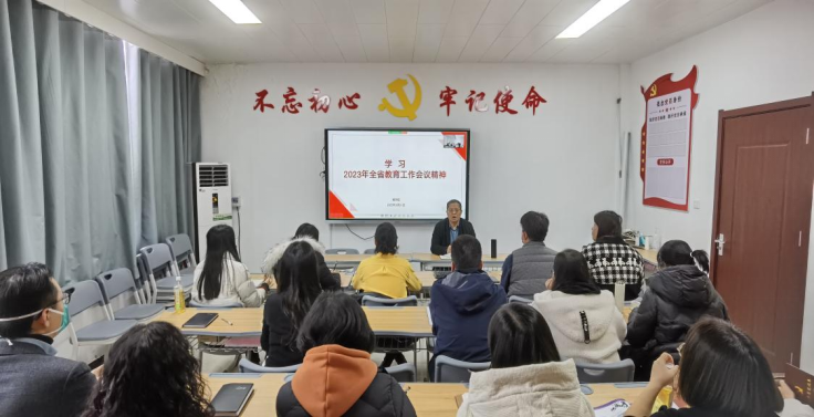 刘嘉慧领学了2023年全省工作会议精神、违反教师职业行为十项准则典型案例、我校教研室管理办法修订稿等方面的内容。
