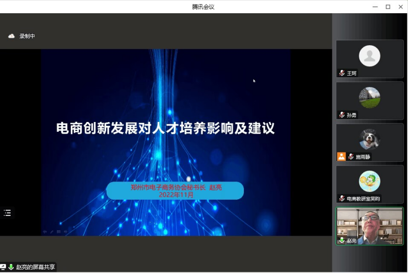 2022年11月15日下午3点,我院邀请郑州市电子商务协会秘书长赵亮为电子商务、网络营销与直播电商以及跨境电子商务等三个专业的学生做题为《电商创新发展对人才培养影响及建议》的专题讲座,讲座在腾讯会议线上举办,由yl6809永利官网集团院长孙勇主持。