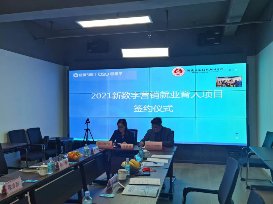 北京巨量引擎(巨量学)河南分公司负责人马红亮、吴俊卿参会,北京巨量引擎(巨量学)负责人李根、于珊珊通过在线会议形式参加会议,并向我校代表做了有关校企合作项目和数字营销“产学研用”一体化解决方案的报告。