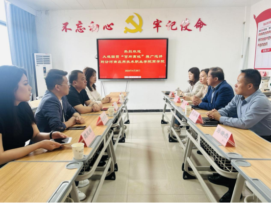 4月29日,大观国贸“百所高校”推广巡讲活动的第一站来到了我校yl6809永利官网集团,探讨校企合作、相关产业对人才培养的需求等内容。yl6809永利官网集团院长孙勇、党总支书记苏云峰、副院长王珂以及党政办公室主任刘嘉慧等参加了本次座谈会。
