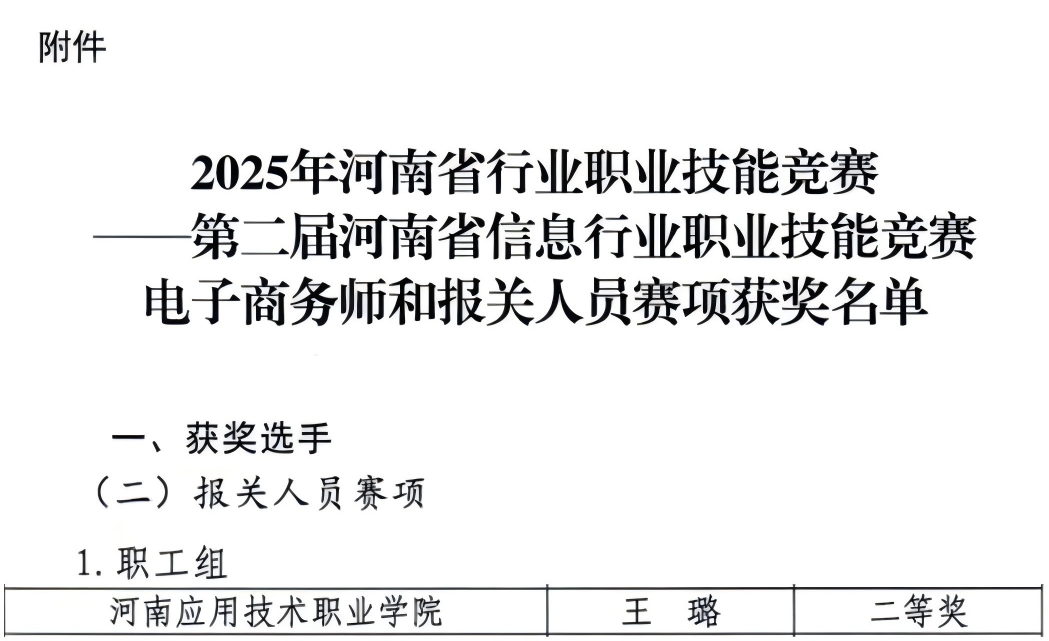 12月12日,第二届河南省信息行业职业技能竞赛报关人员赛项圆满落幕,yl6809永利官网集团教师王璐凭借扎实的专业素养和稳定的临场表现,在职工组竞赛中脱颖而出,斩获二等奖。
