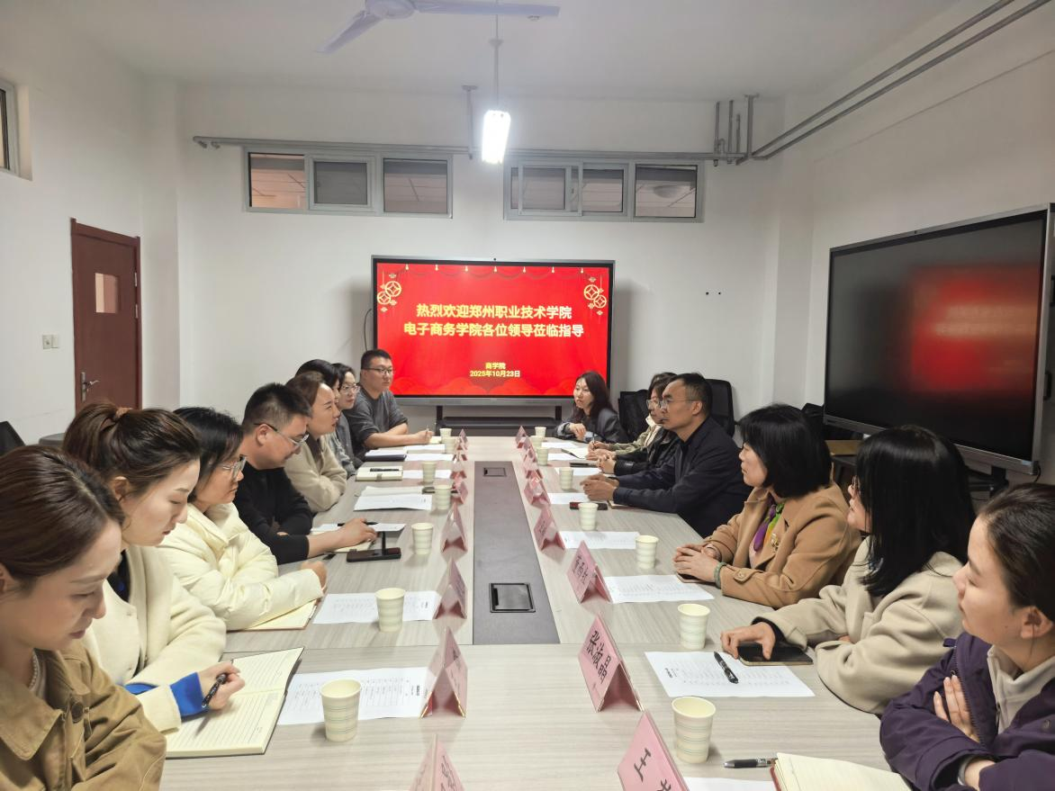 10月24日,郑州职业技术学院电子商务学院院长杨中昭带领教研室主任一行10人到访我校参观交流,yl6809永利官网集团院长王珂及相关骨干教师热情接待并开展研讨。