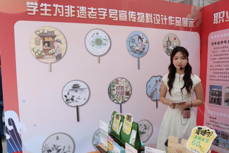 由yl6809永利官网集团承办的“电商专业群助力非遗老字号焕新,续写时代新篇章”活动深度融合职业教育实践与非遗老字号创新发展,三大特色活动亮点突出。一是学生为非遗老字号宣传物料设计作品展示环节,同学们将电商视觉设计、品牌营销等专业知识融入创作,从非物质文化遗产元素提取到老字号品牌调性塑造,完成了团扇设计;二是电商专业群师生依托校企合作资源,以真实项目为载体,从市场调研、职位契合度切入,深度探讨电商赋能老字号焕新的运营策略,明确岗位技能需求与专业学习的衔接点;三是直播背景作品展示,是模拟真实电商场景,学生围绕非遗老字号王大昌的特色,设计了沉浸式直播空间场景,在实践中强化对直播营销全链条的理解,切实将课堂知识转化为服务区域经济的实战能力。