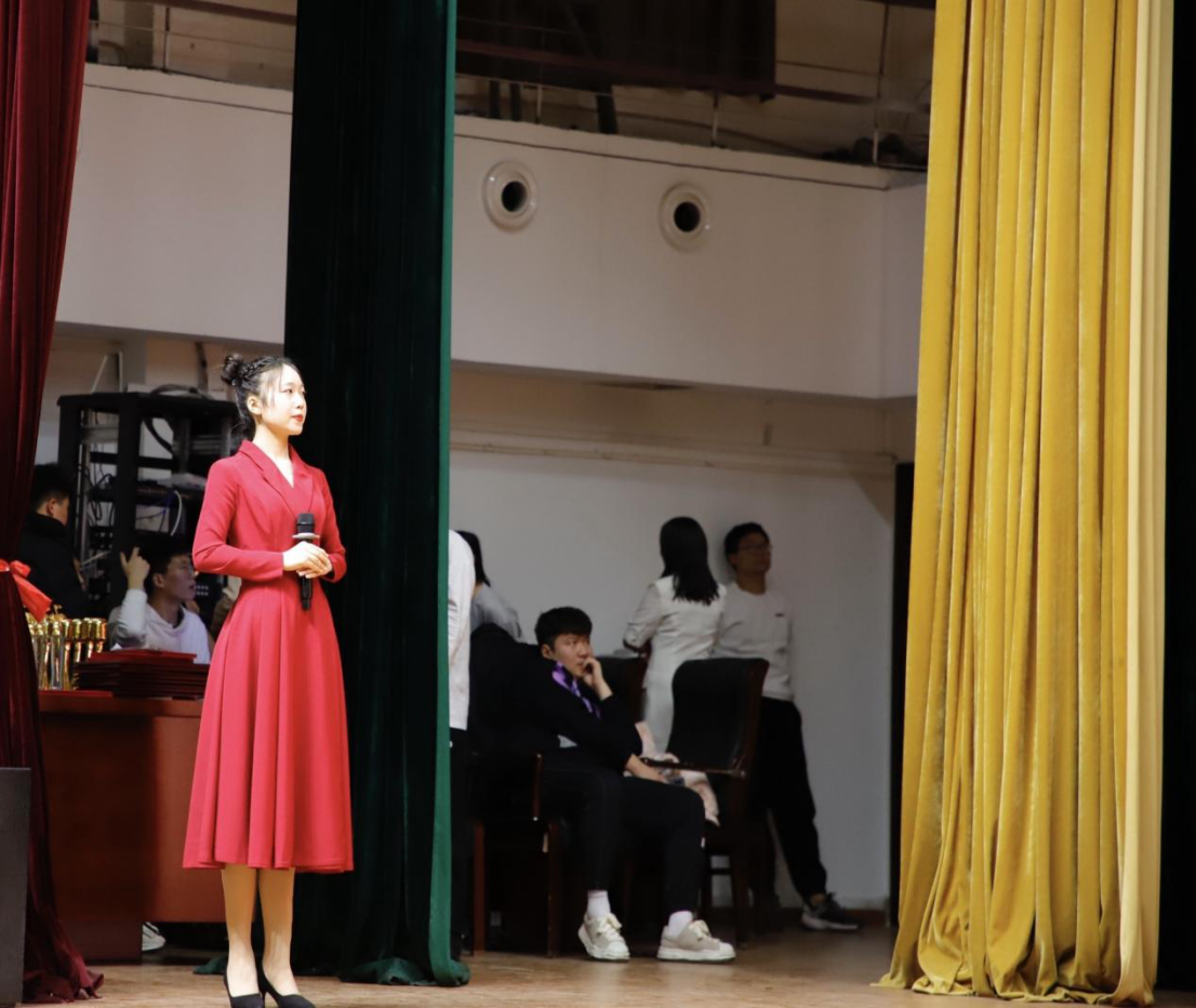 陈国栋同学以“青春绽放,贺百年华诞”为主题的模拟主持为他赢得了全场的无数欢呼与掌声。在自选稿件朗读中他选择了舒婷的《致橡树》,“我如果爱你,绝不像攀援的凌霄花,借你的高枝炫耀自己......”
