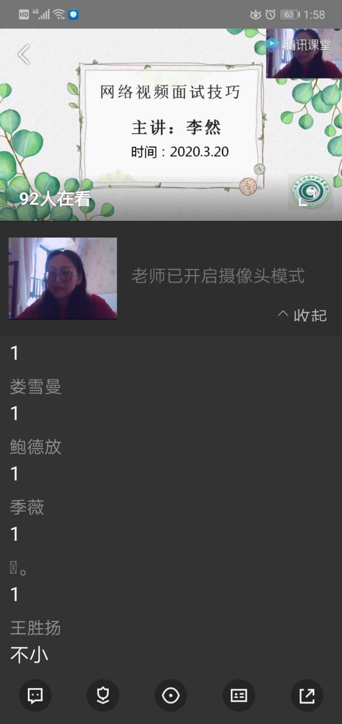 yl6809永利官网集团的李然、李力、刘超三位老师分别以“云面试技巧”、“在线简历制作”、防疫心理疏导以及就业协议签订及档案落户等内容进行分享讲解,为毕业生们带来了“云求职”的技能辅导和就业前的各项准备工作的重点解答。学院党总支副书记周燕老师及2020届毕业生同时在线观看。