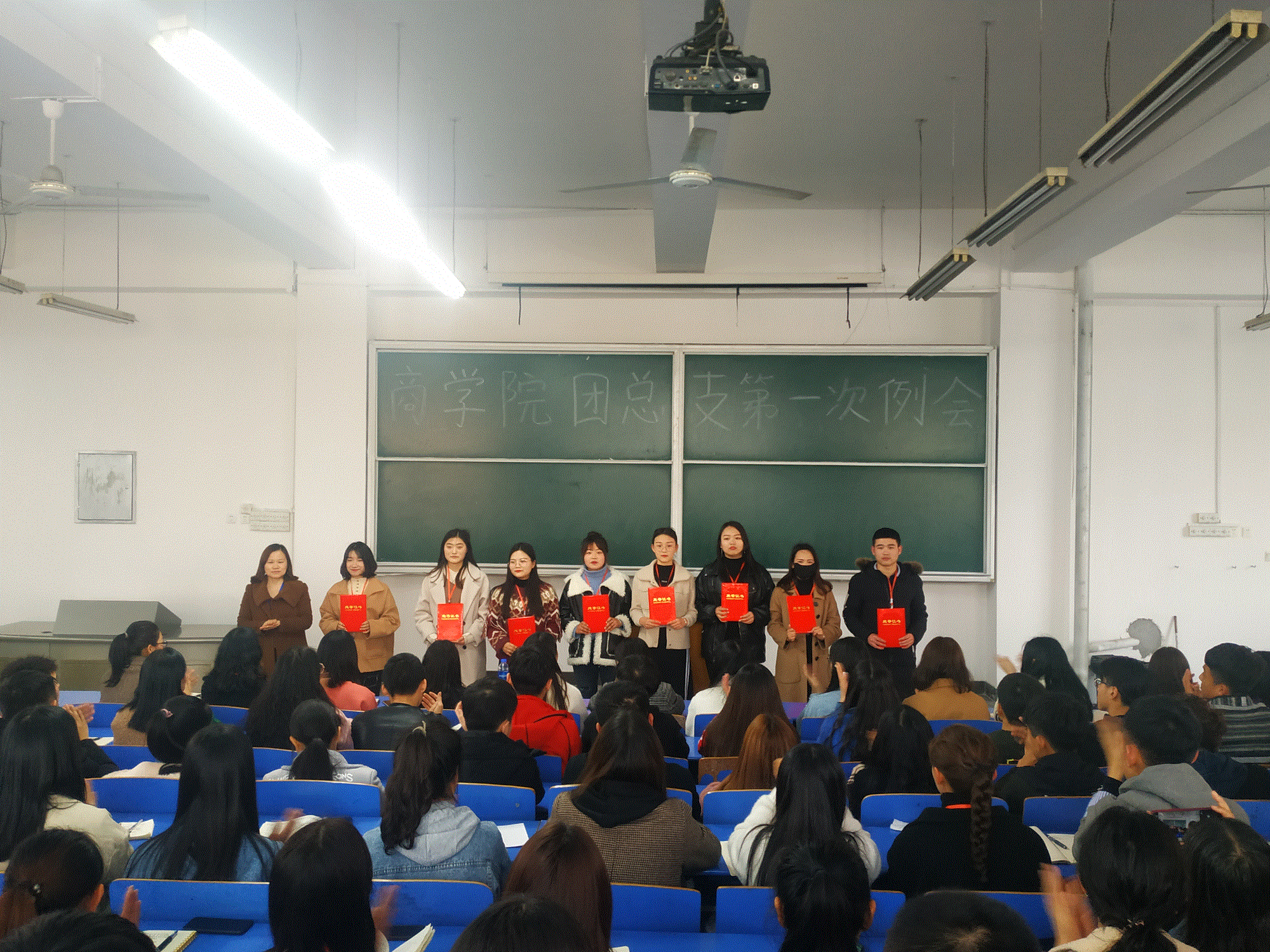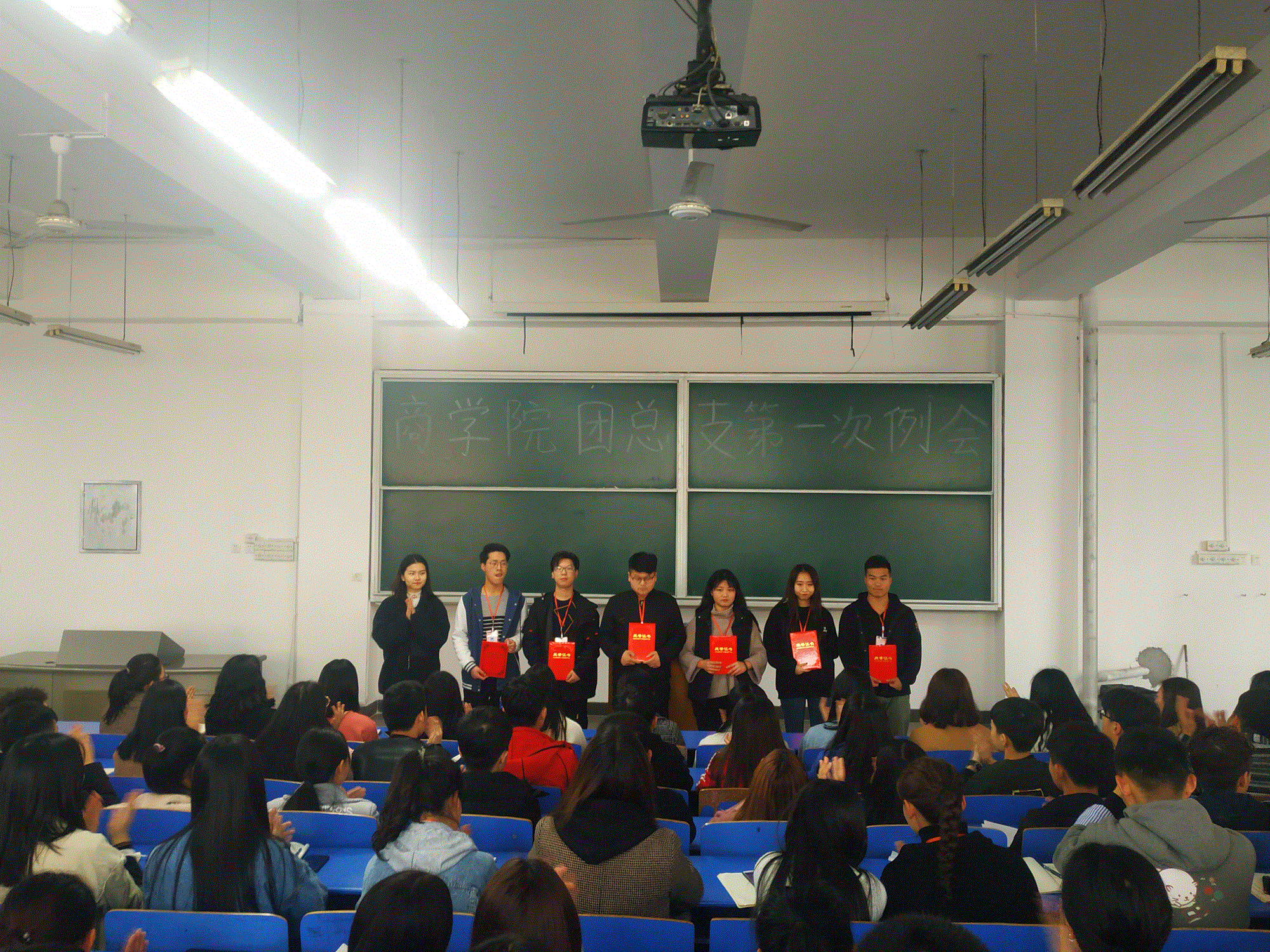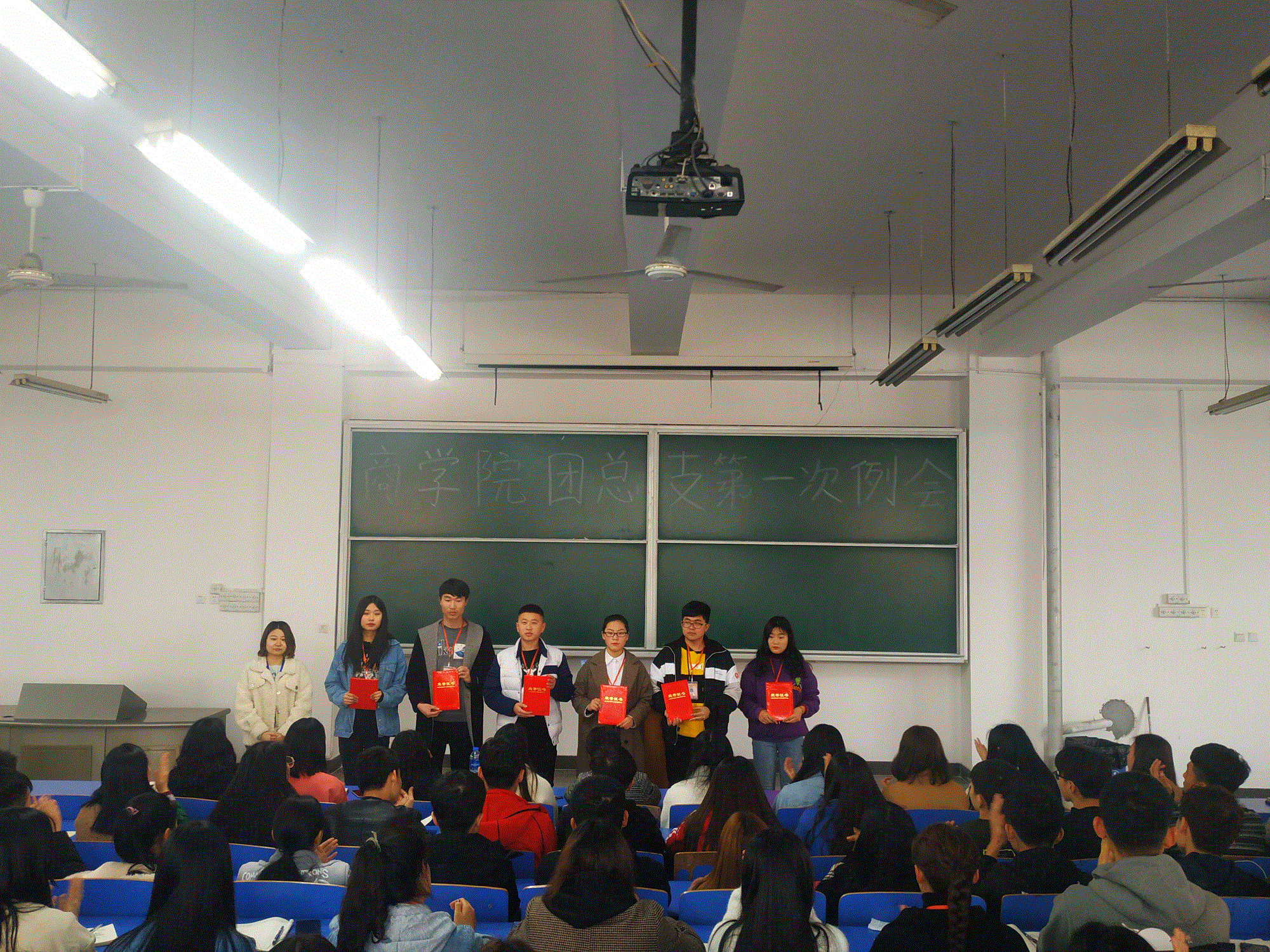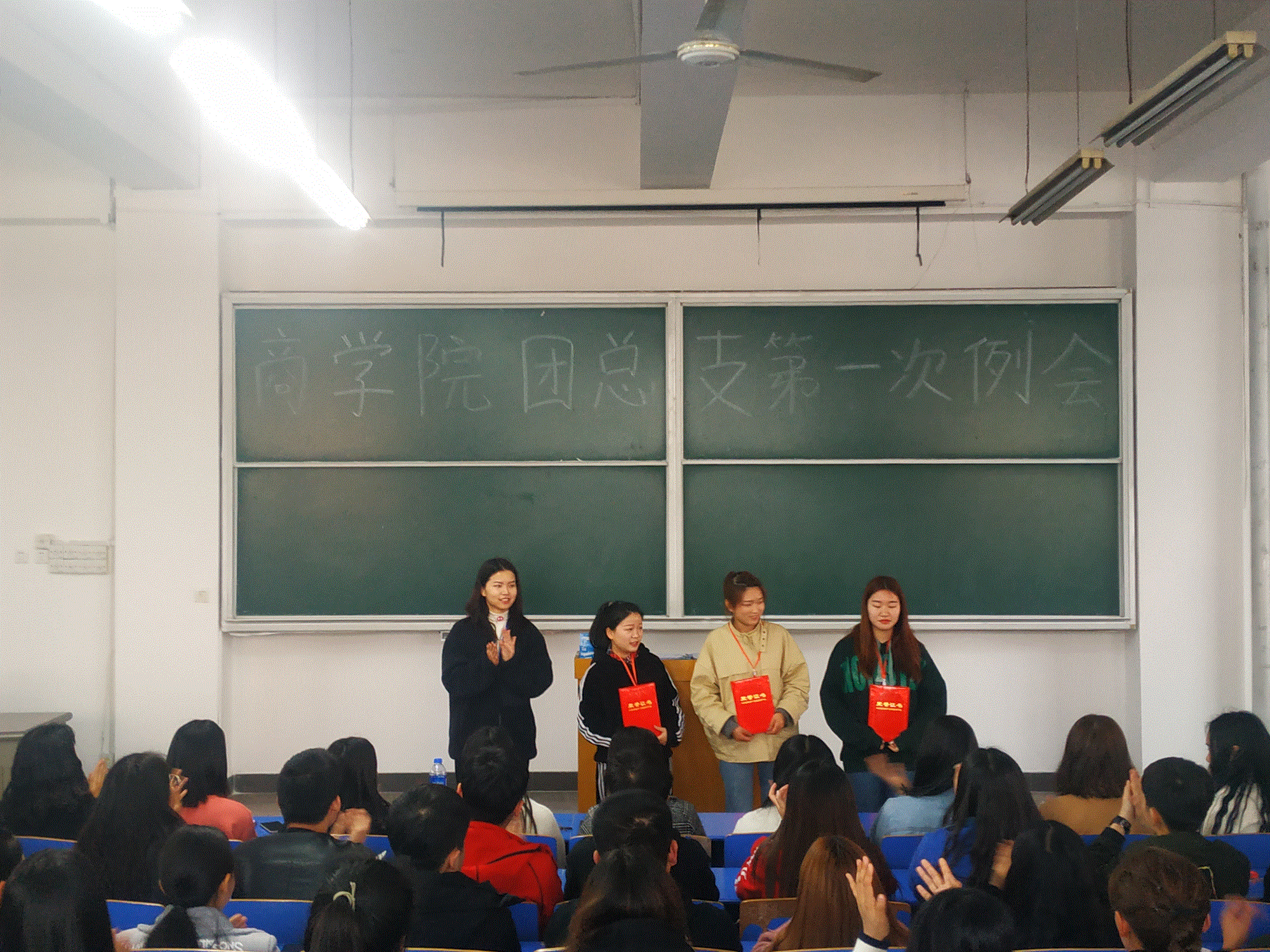 首先学生会主席季宗涵宣读上学期优秀干部,优秀工作者表彰名单,分别由周燕书记、李力老师和董会老师为受表彰同学进行了颁奖。
