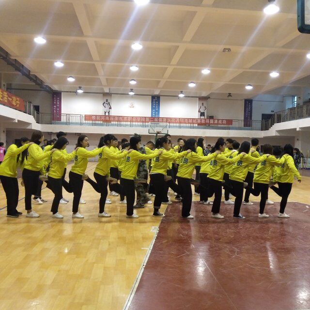 四个人一组,围坐一圈,背对背的坐在地上;在不用手撑地站起来;随后依次增加人数,每次增加2个直至12人。