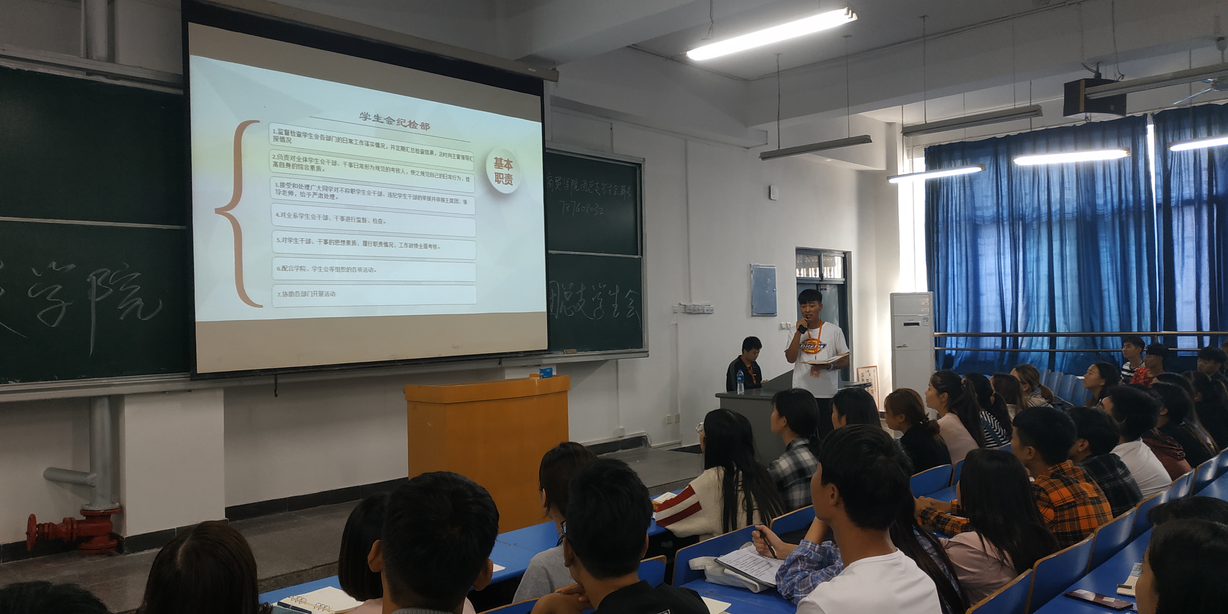 会议中学生会主席团宣读商贸学院团总支学生会规章制度和各部门干部公示名单及对应的负责老师。周燕书记对干事提出了以下要求: