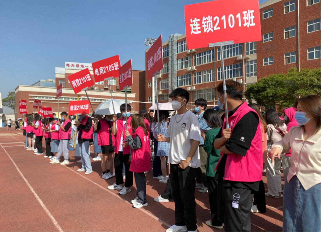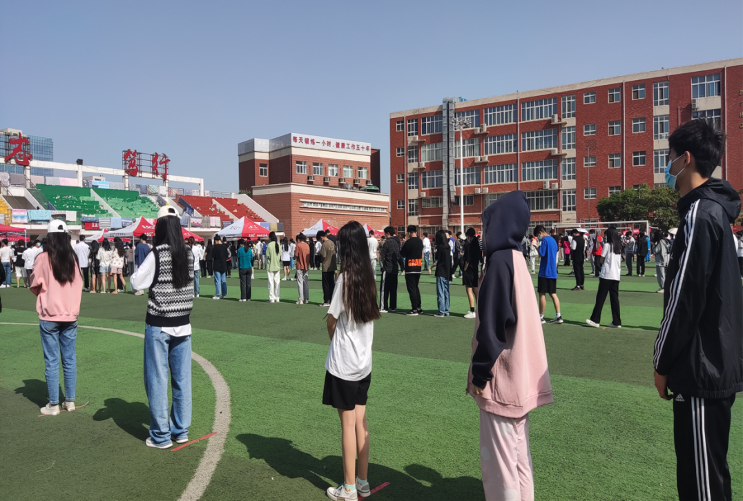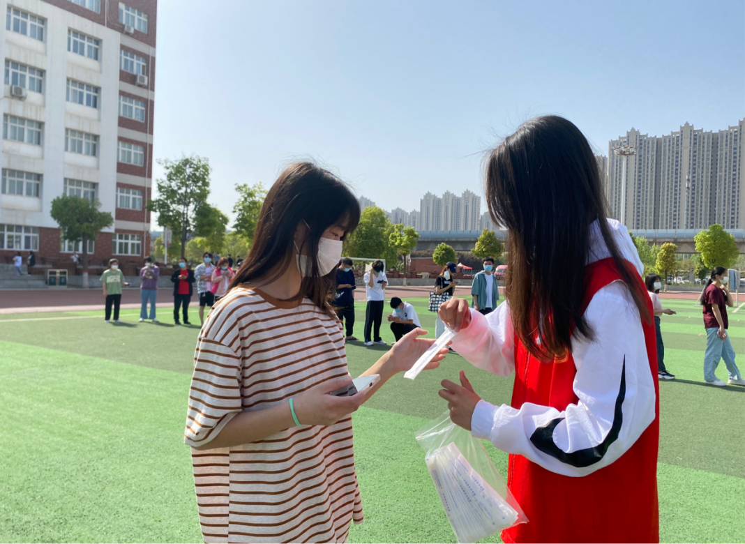 各个班级陆续来操场进行核酸检测